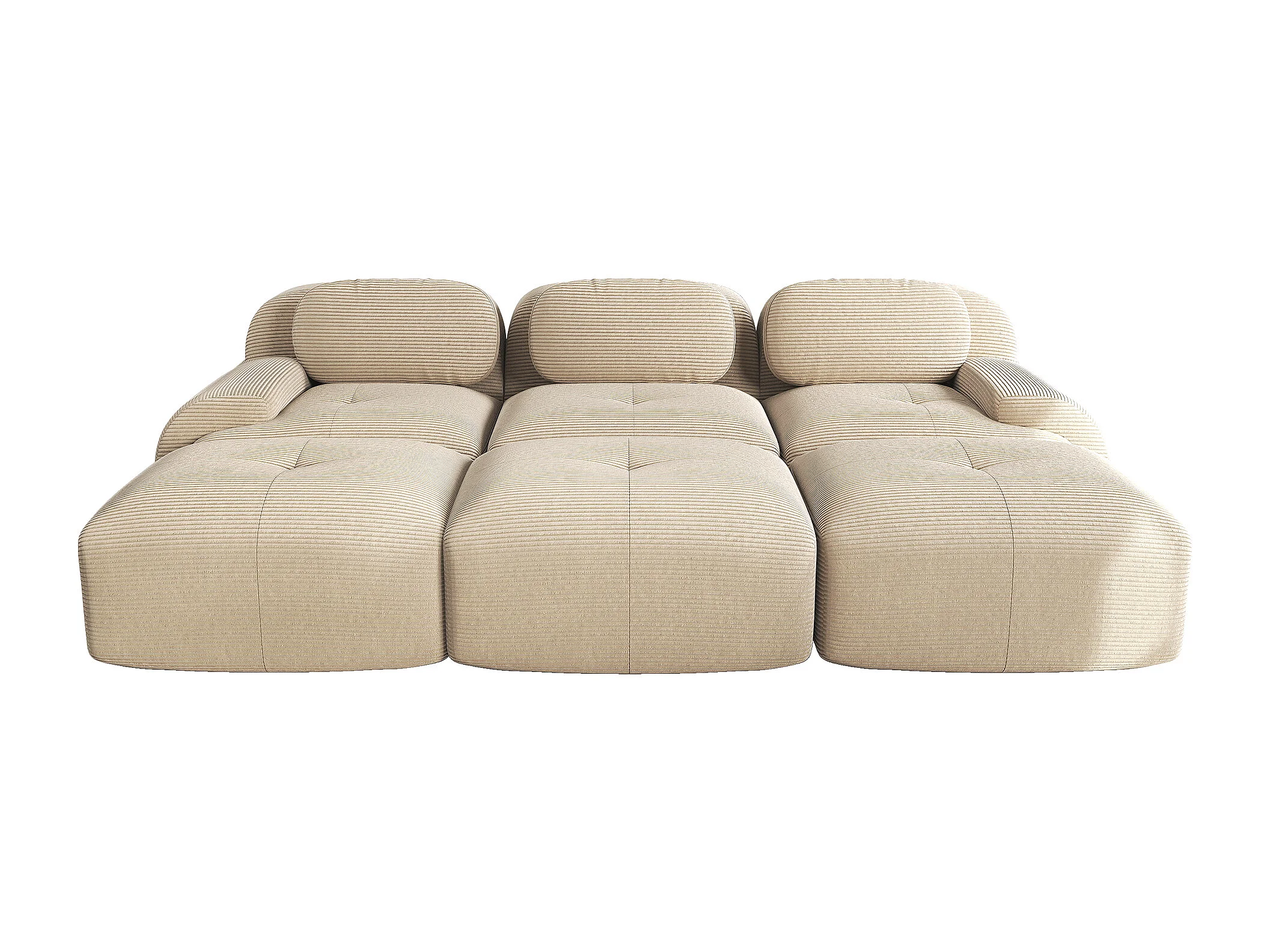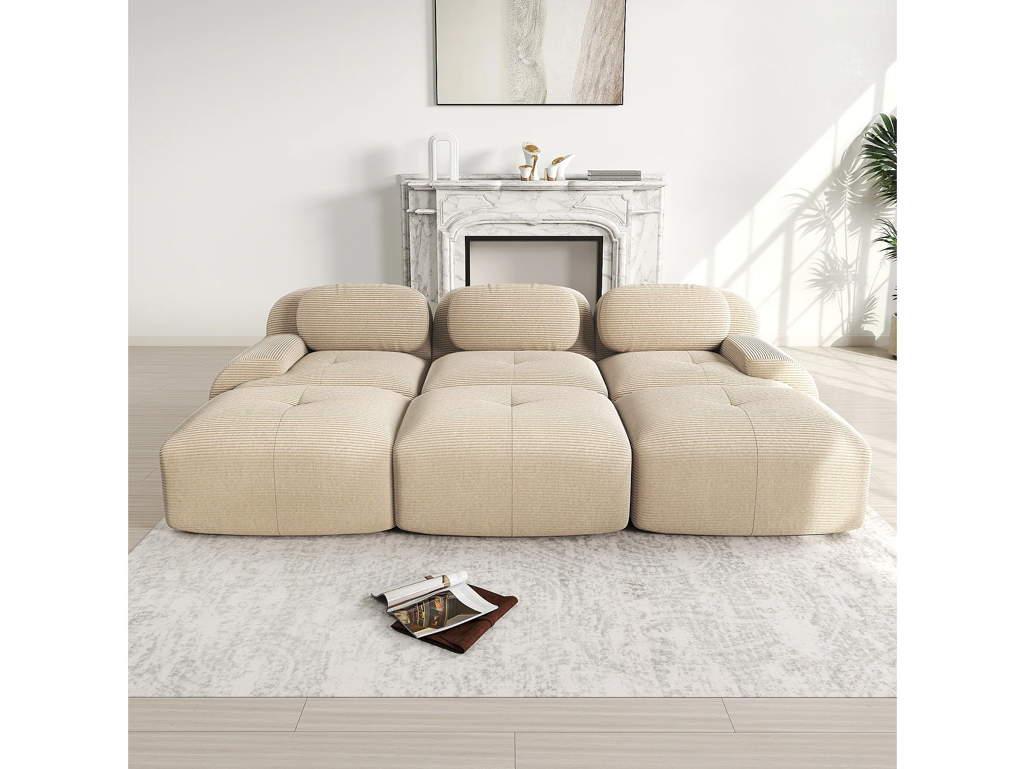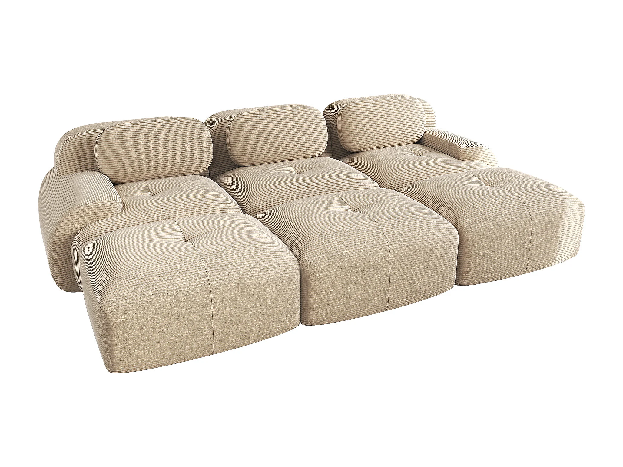 Canapé 3 posti modulabile velluto a coste con 3 tabourets mousse haute densité salon chambre beige