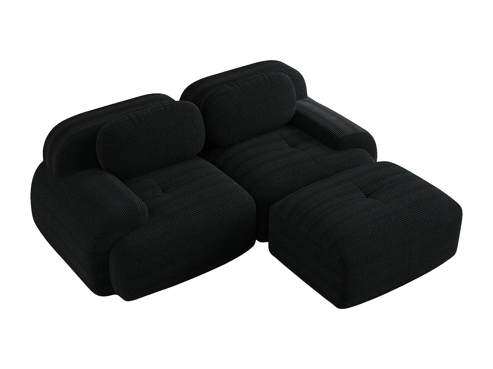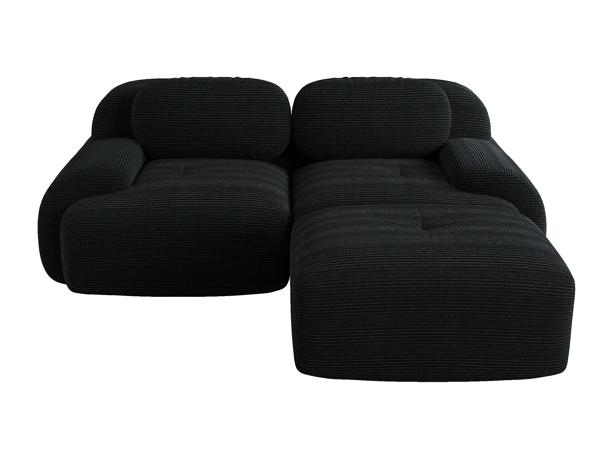 Canapé d'angle 82 pouces velours côtelé modulable noir sans montage mousse haute résilience pour salon chambre home cinema
