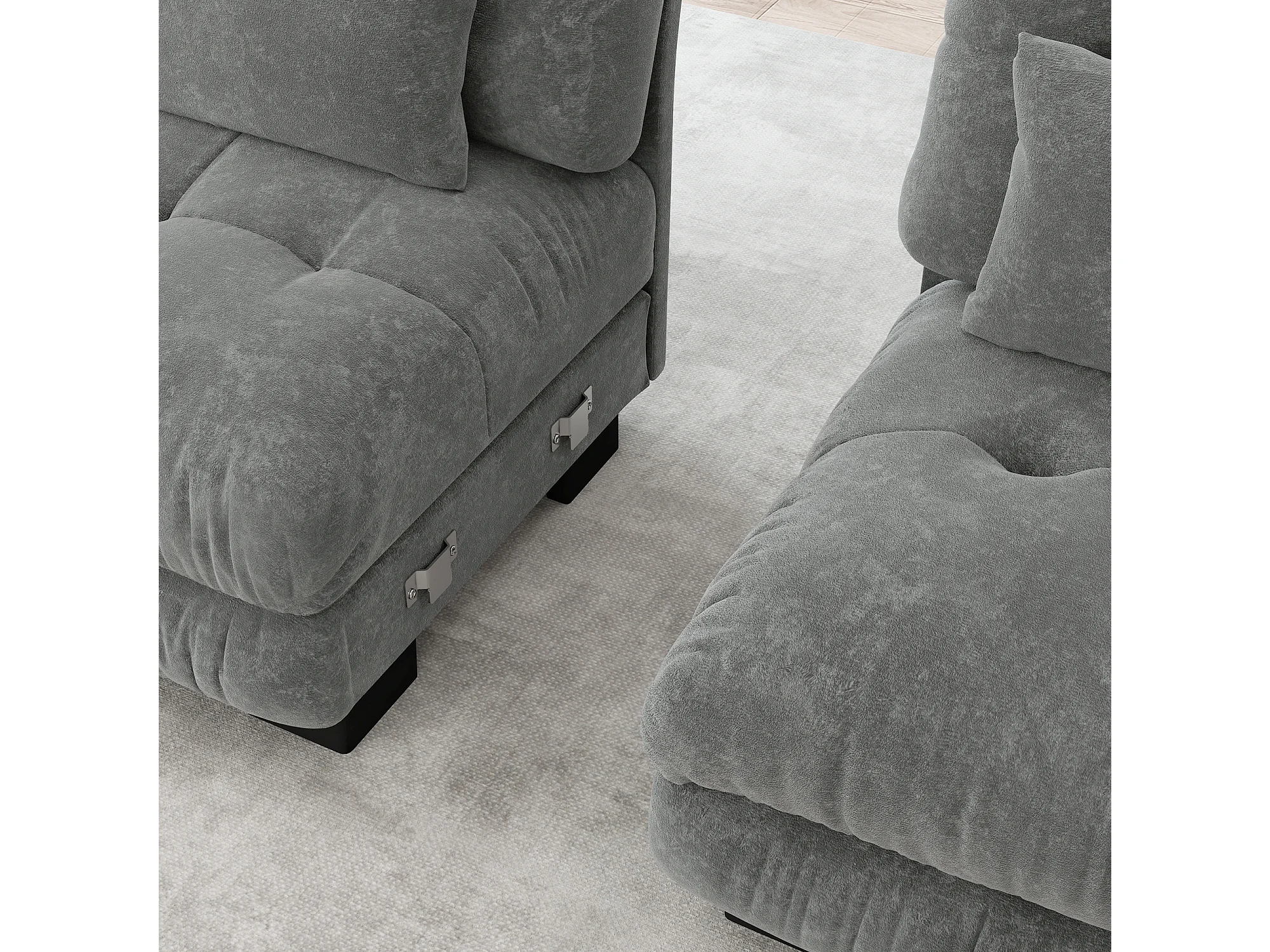 Canapé d'angle Cloud 2 posti in ciniglia grigia con cuscini e struttura in legno per salone