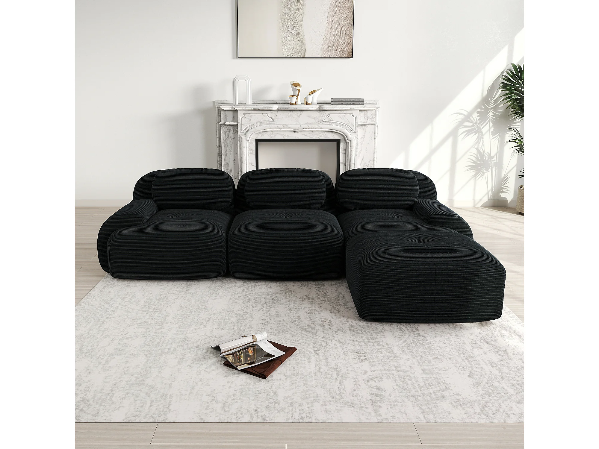 Canapé d'angle modulable velours côtelé ergonomico senza montaggio per salone camera noir