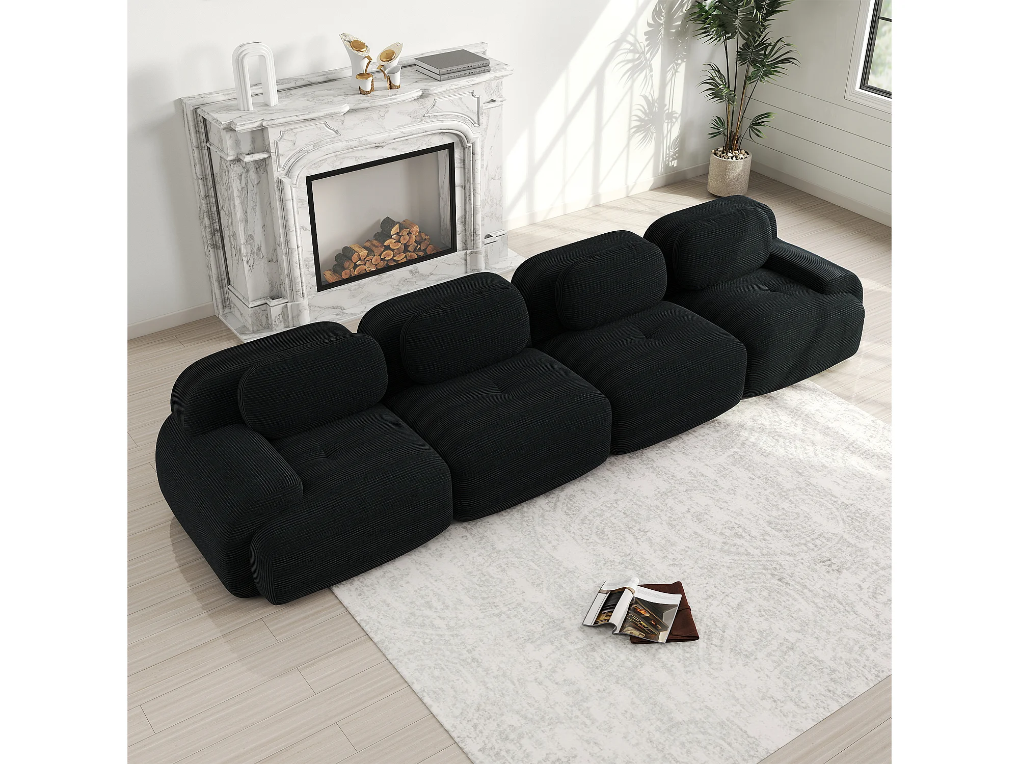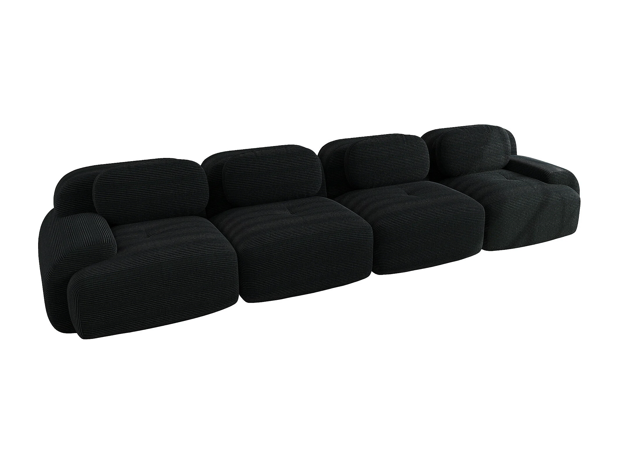 Canapé modulabile 4 posti in velluto côtelé ergonomico senza montaggio per camera da letto nera