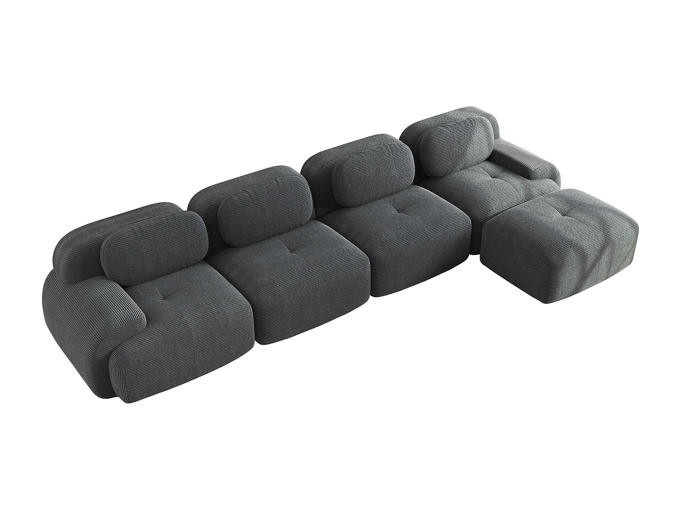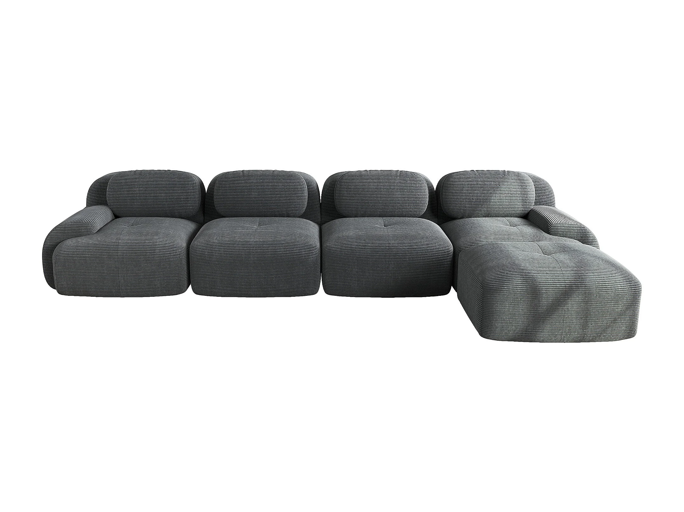 Canapé modulabile 4 posti velluto a coste mousse 32D chaiselongue ergonomica salon gris