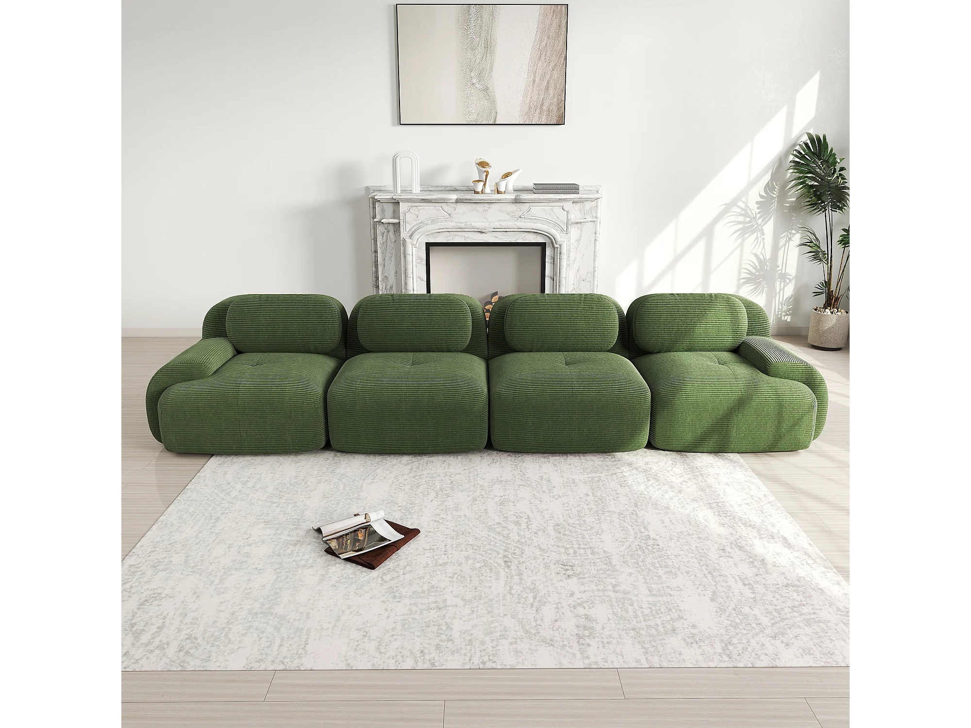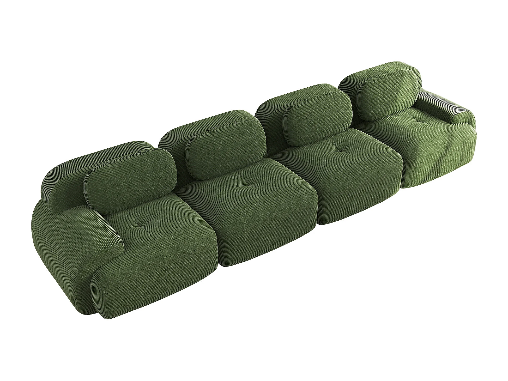 Canapé modulabile 4 posti velluto côtelé verde ergonomico senza montaggio mousse 32D per salone camera ufficio