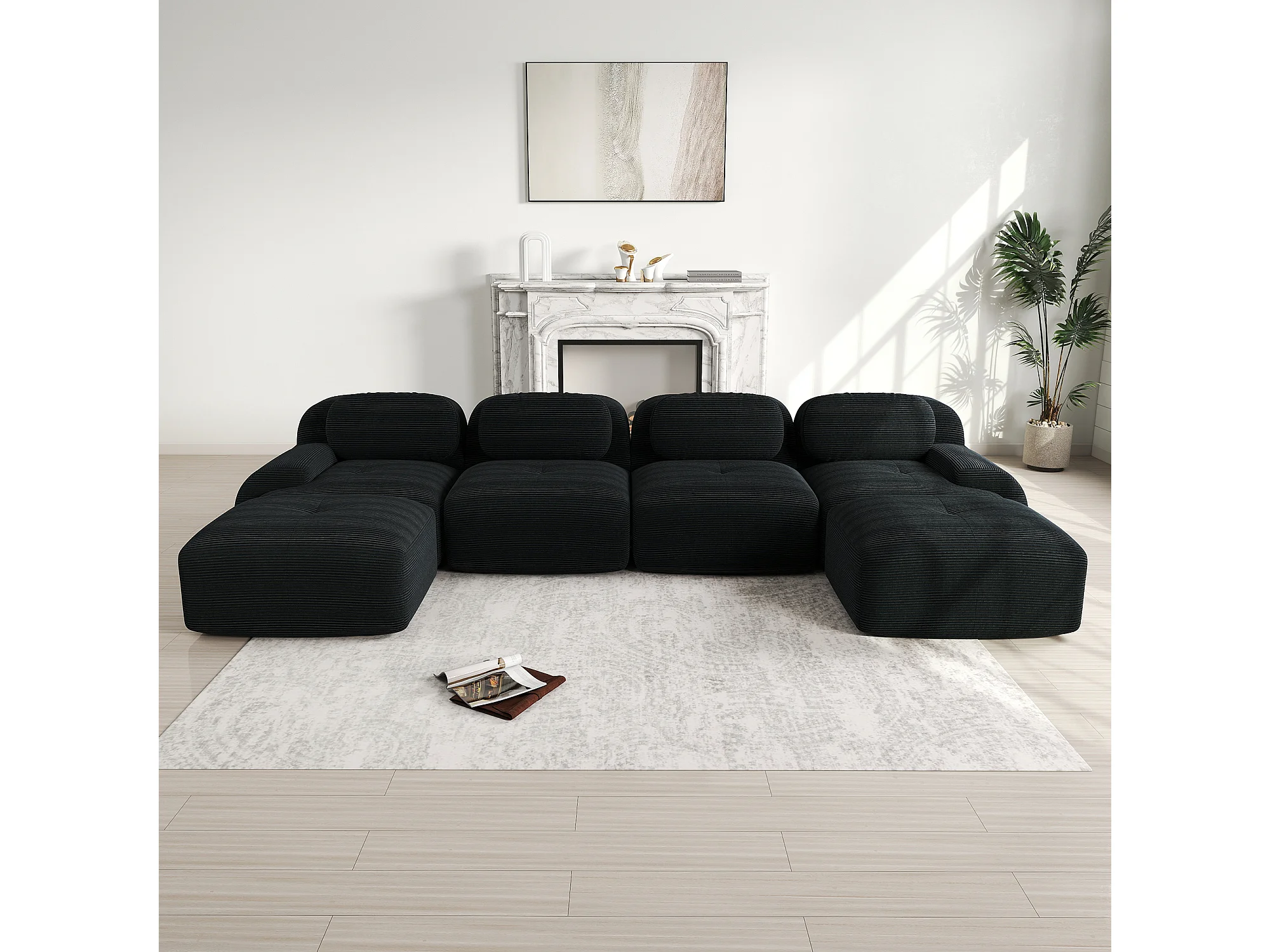 Canapé modulabile a U 5 posti in velluto senza montaggio ergonomico per salone e camera nera