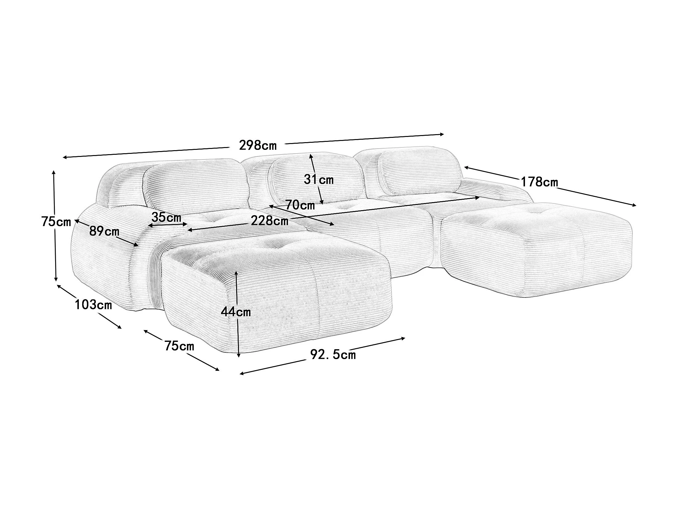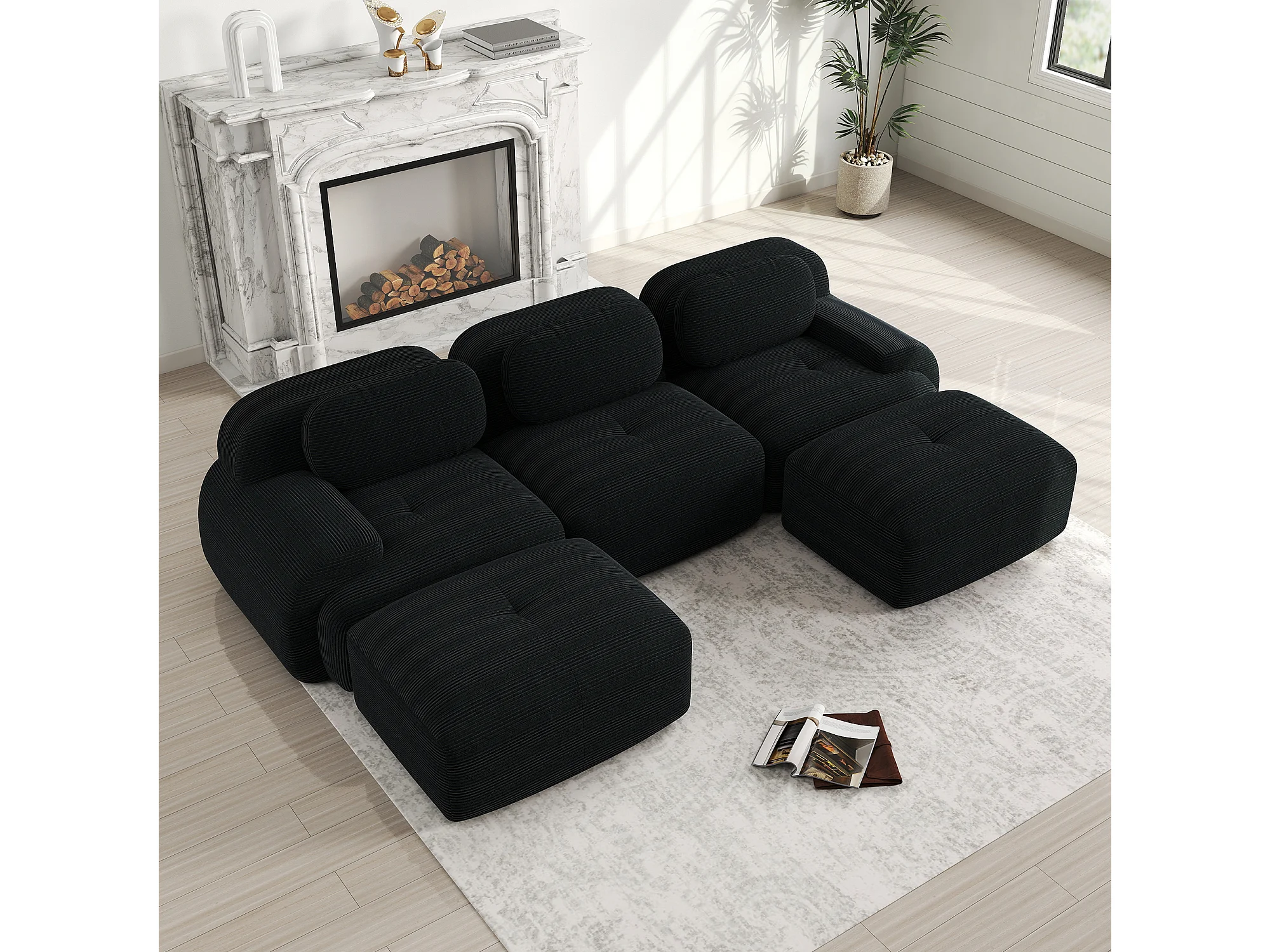 Canapé modulabile in velluto côtelé ergonomico senza montaggio per salone camera da letto ufficio noir