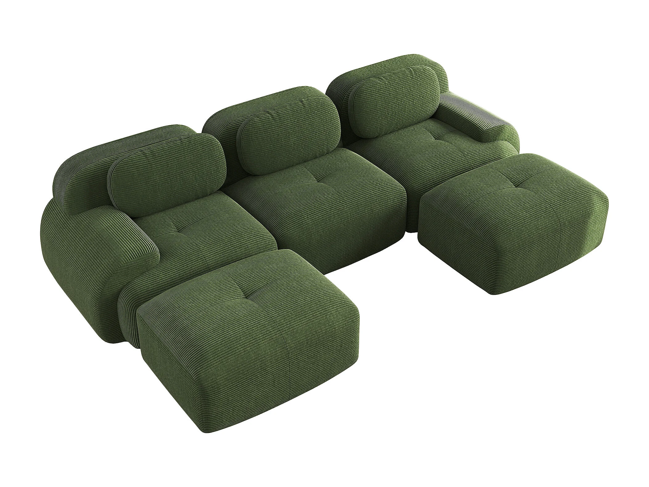 Canapé modulabile U velours côtelé vert ergonomico senza montaggio accoudoirs large mousse haute résilience