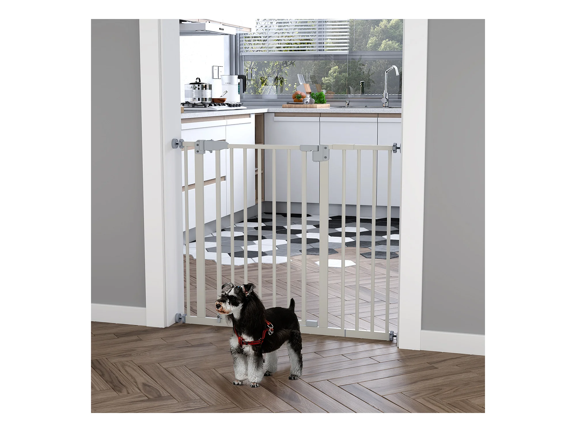 Cancellino cani 75-103cm con porta piccola e chiusura automatica bianco