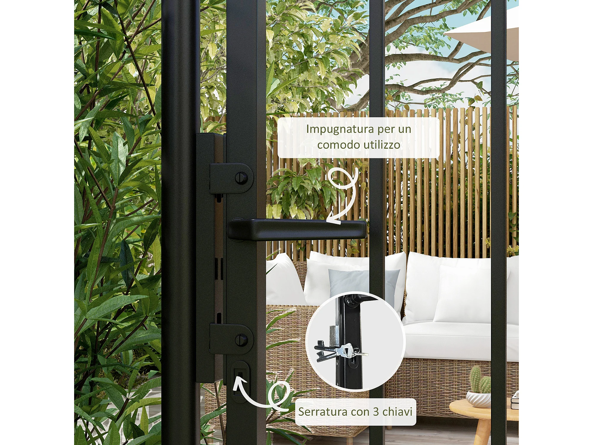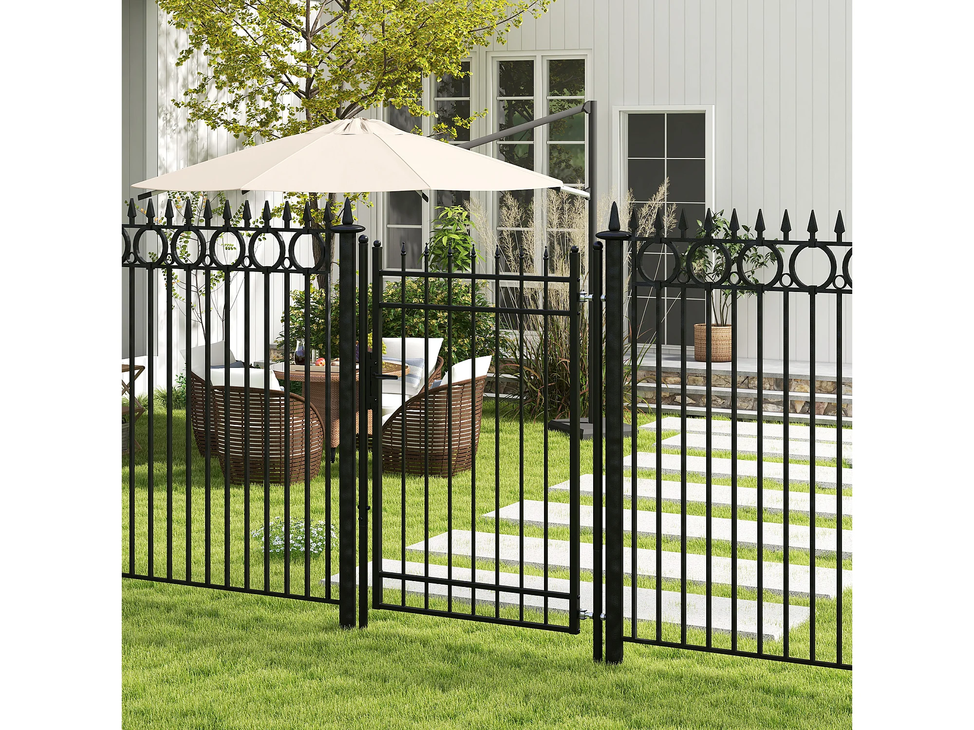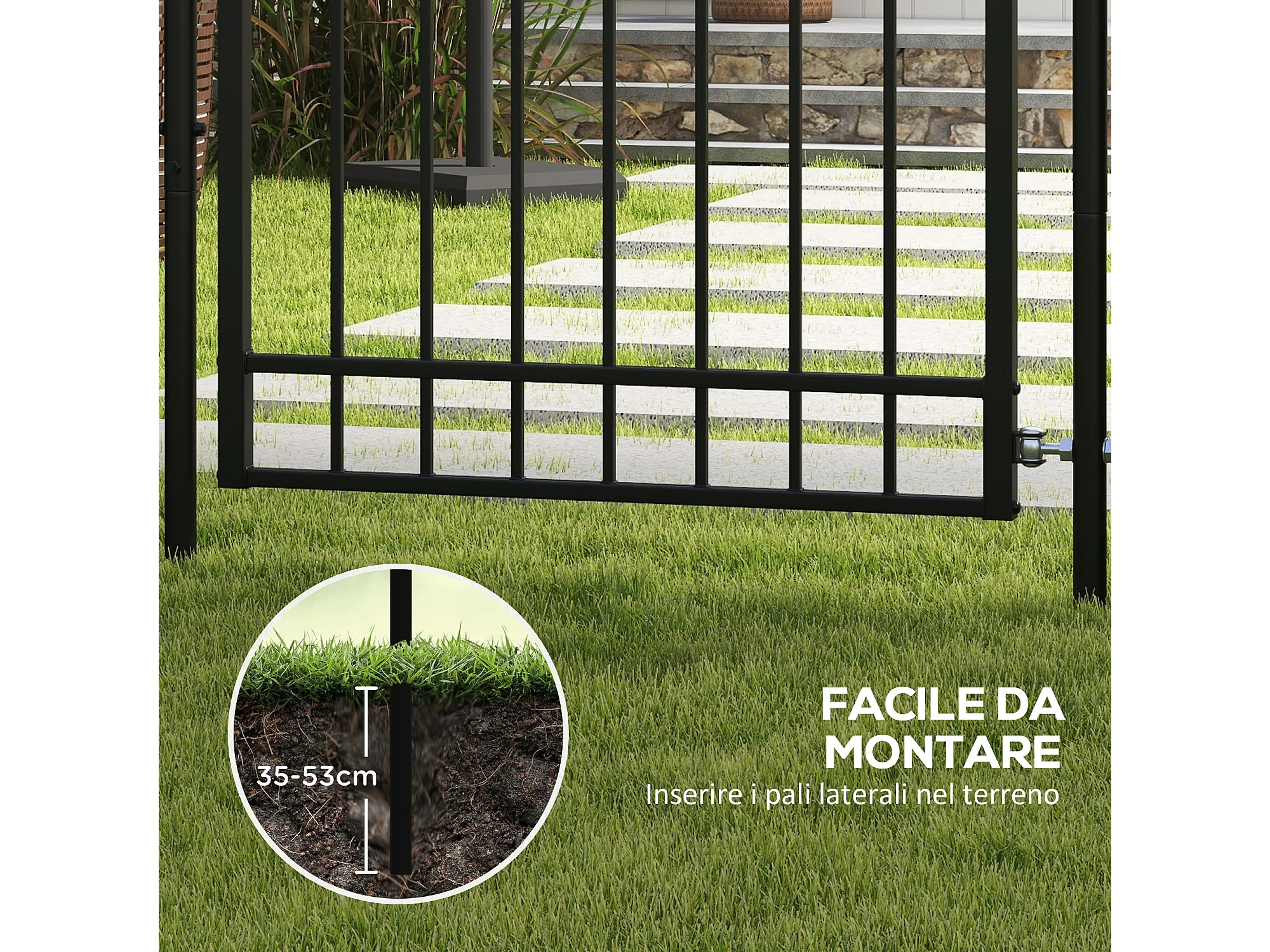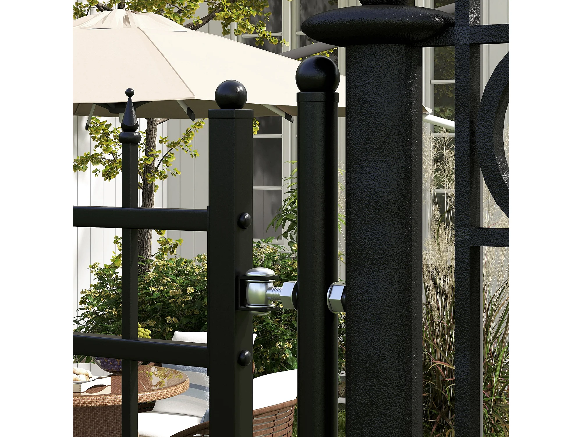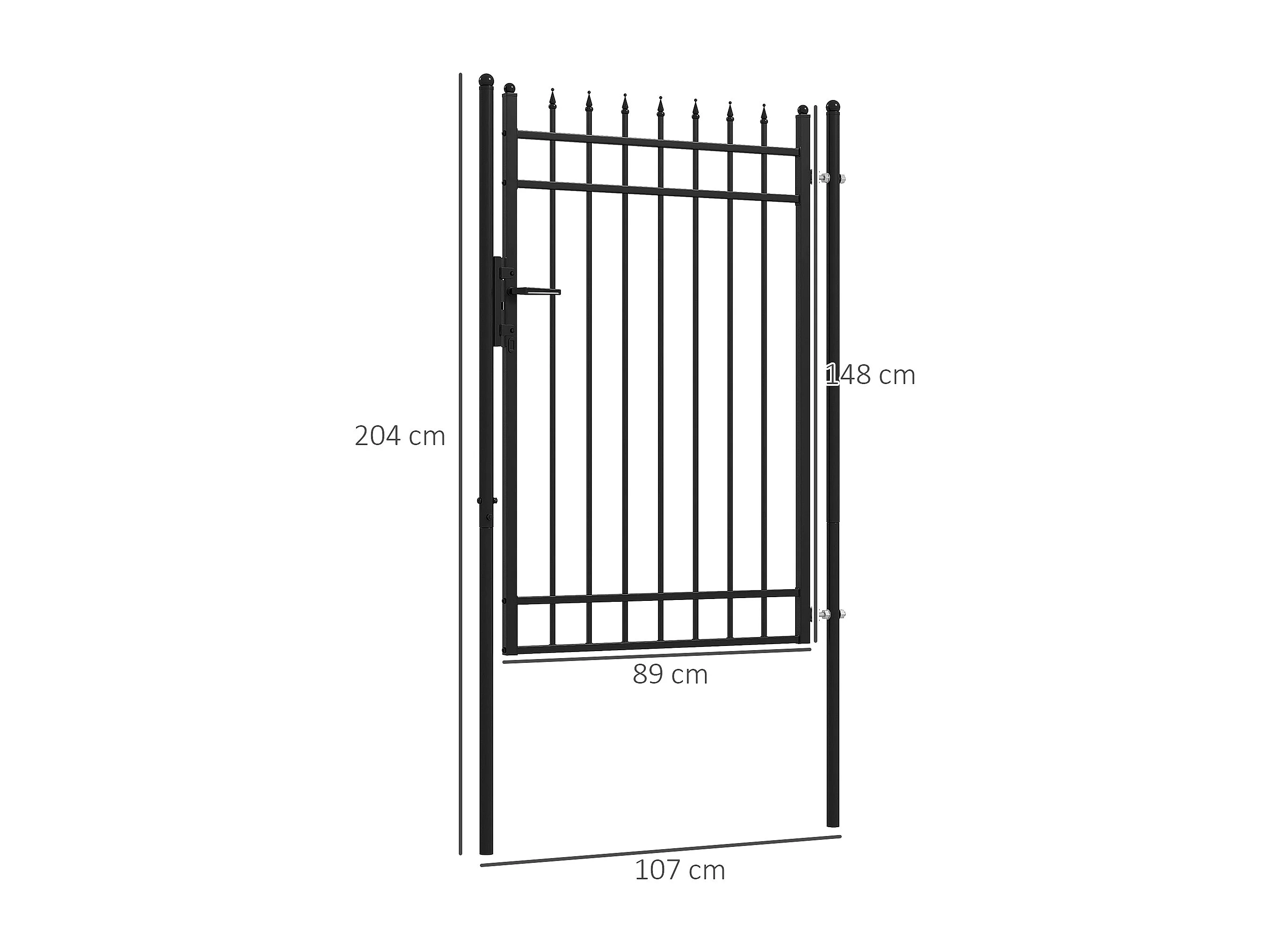 Cancelletto di sicurezza con serratura e 2 paletti in acciaio nero