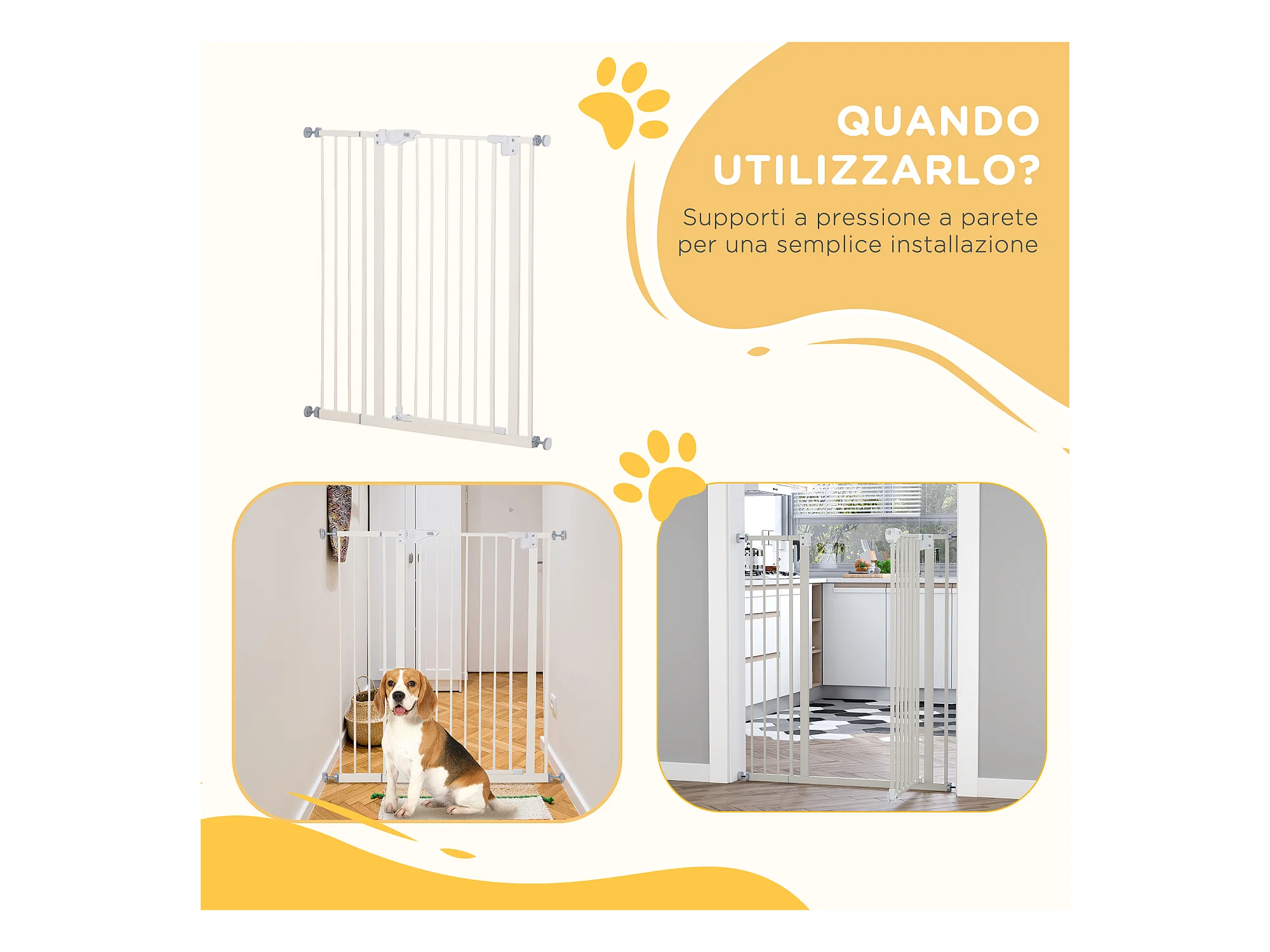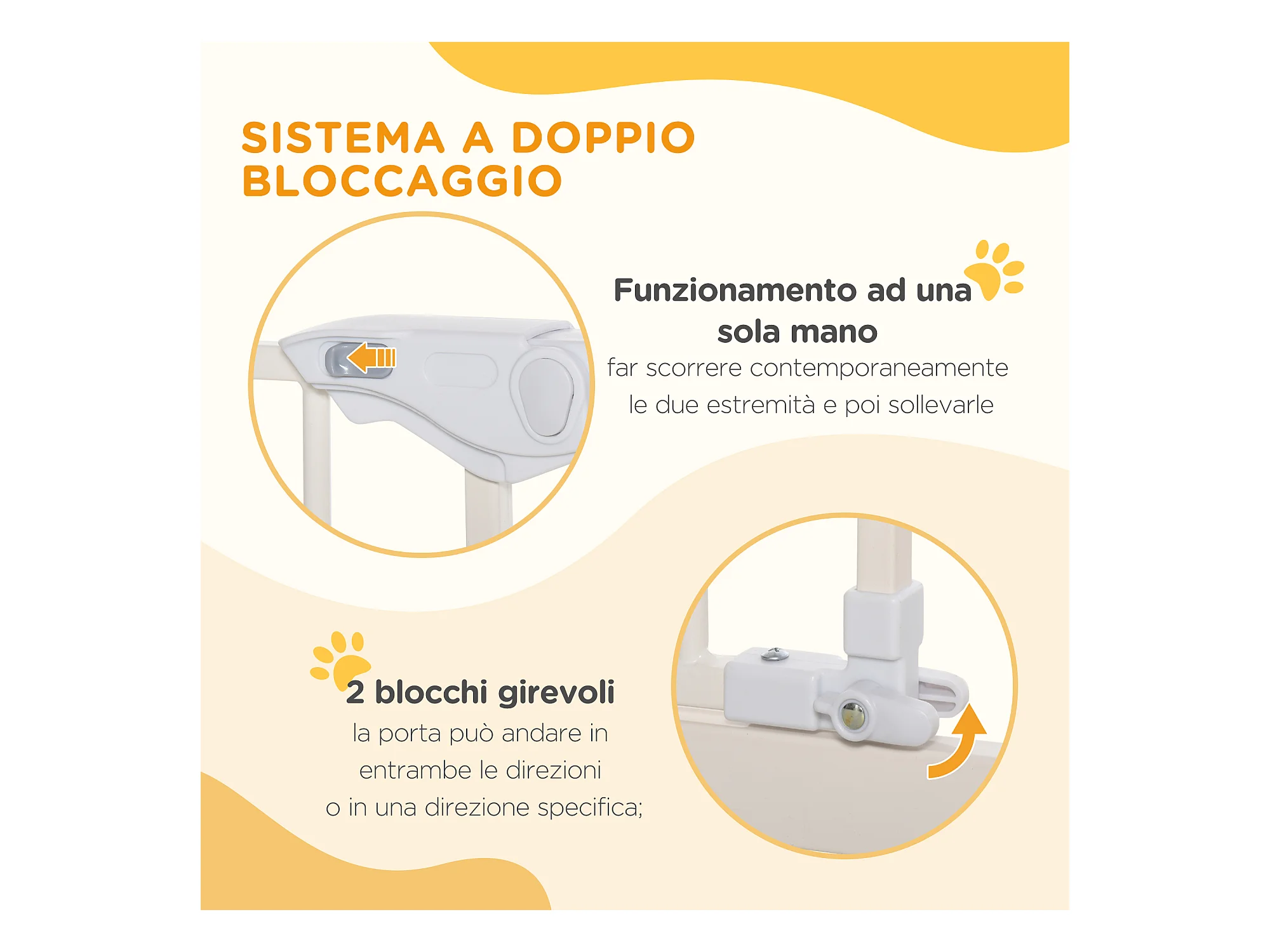 Cancellino cani 75-103cm con porta piccola e chiusura automatica bianco