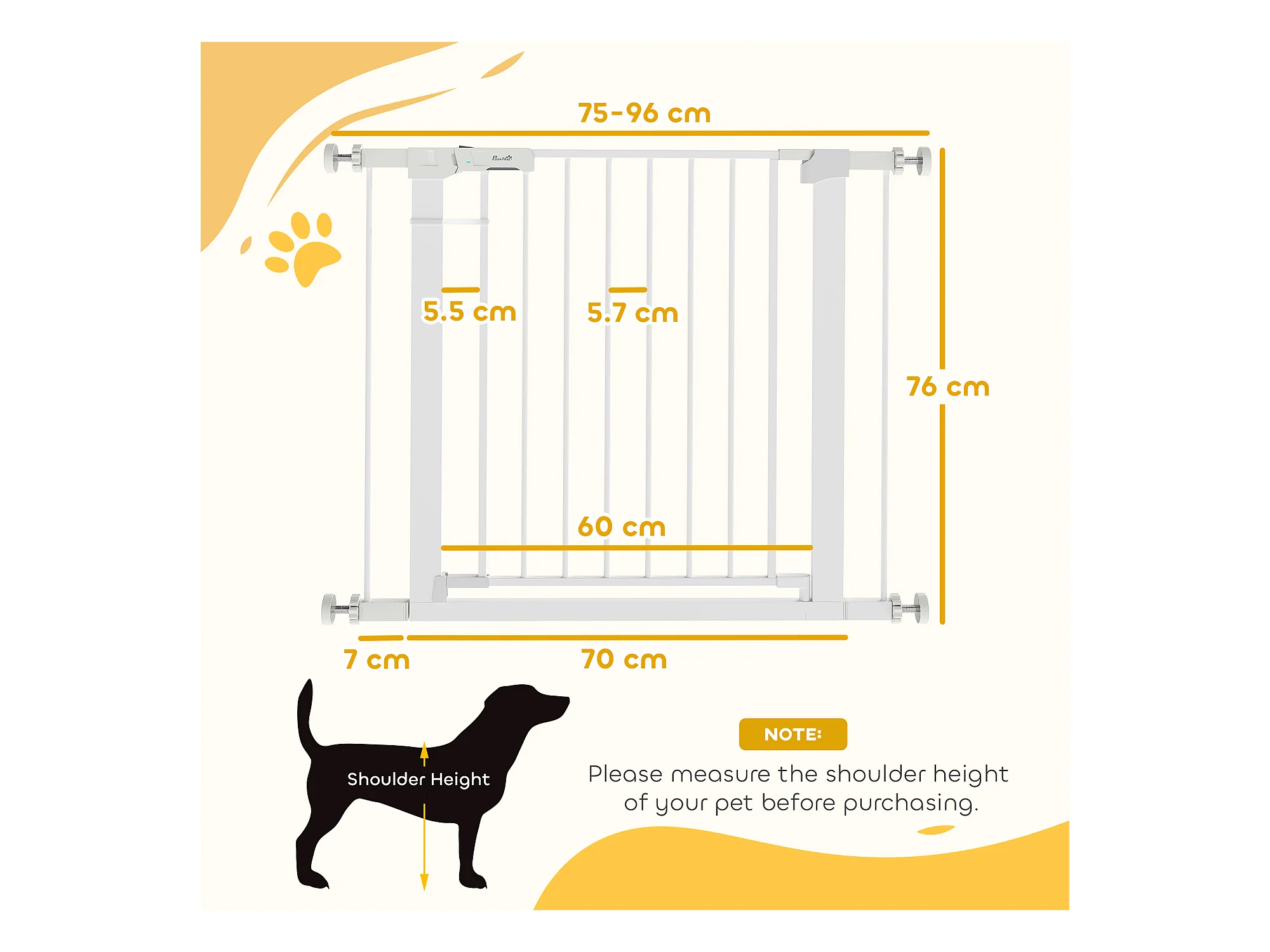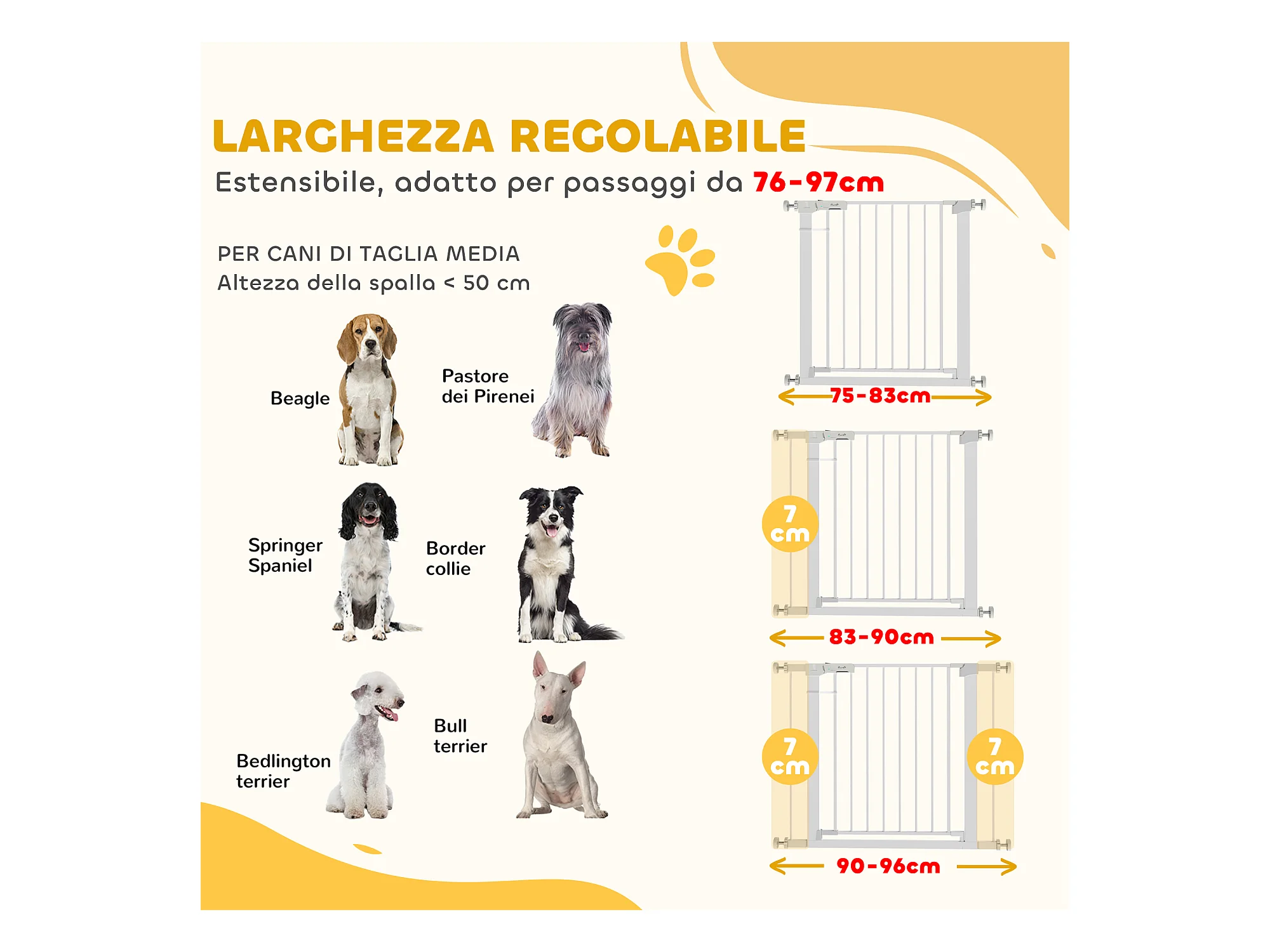 Cancellino per cani estensibile 74-80x76 cm in acciaio e pa bianco