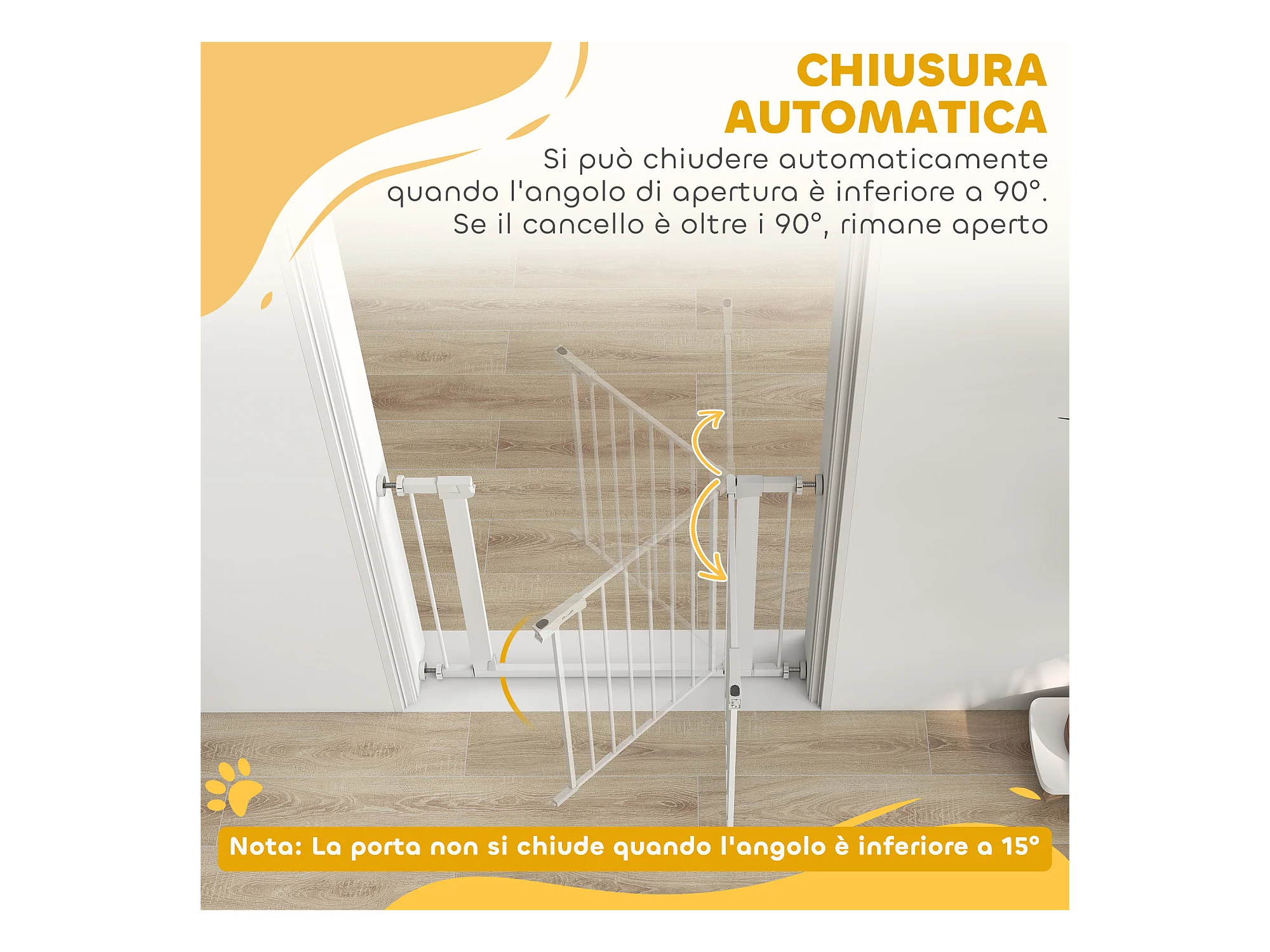Cancellino cani 75-103cm con porta piccola e chiusura automatica bianco