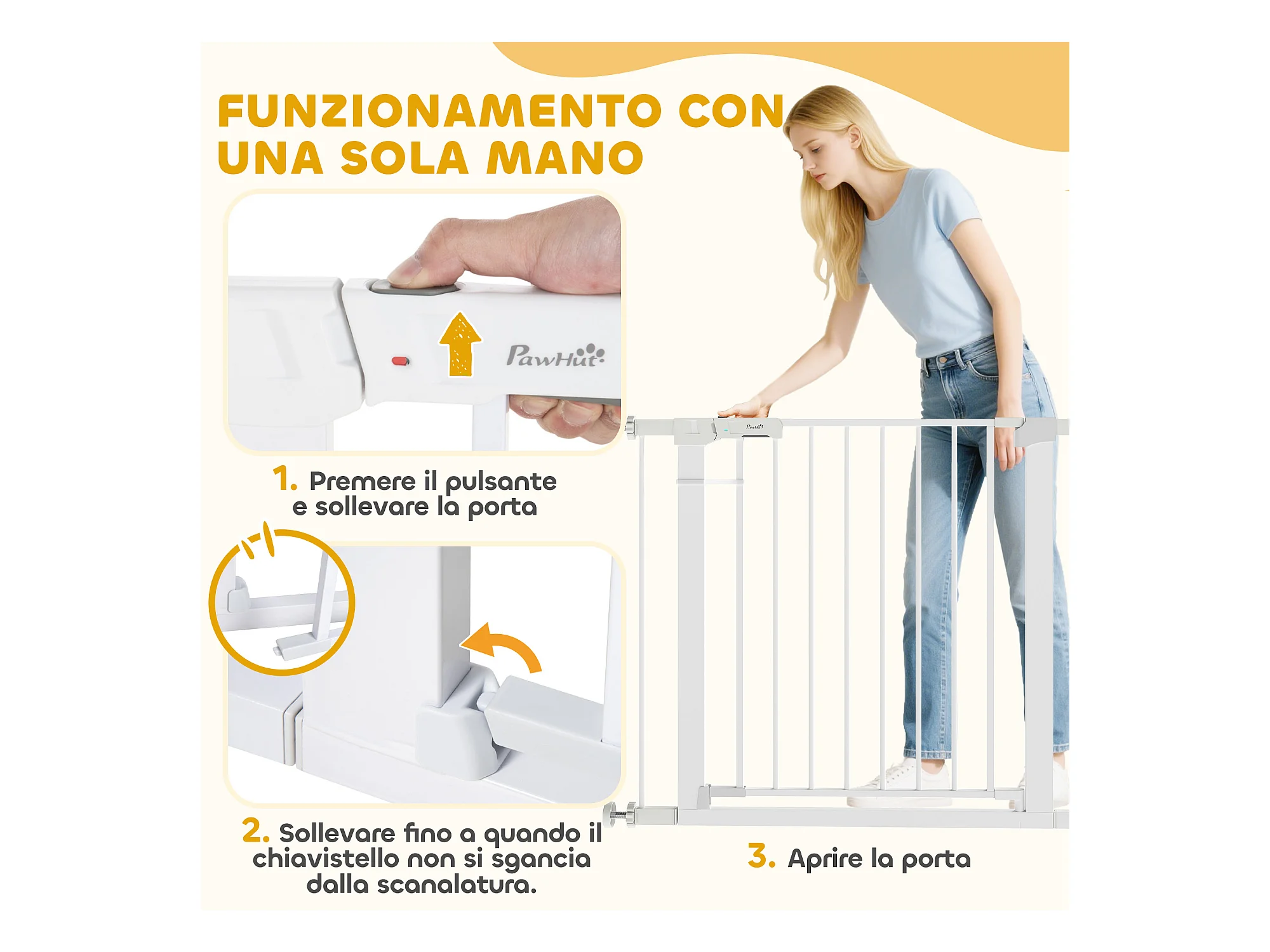 Cancelletto sicurezza cani fissaggio a pressione (largo 76-97cm) bianco