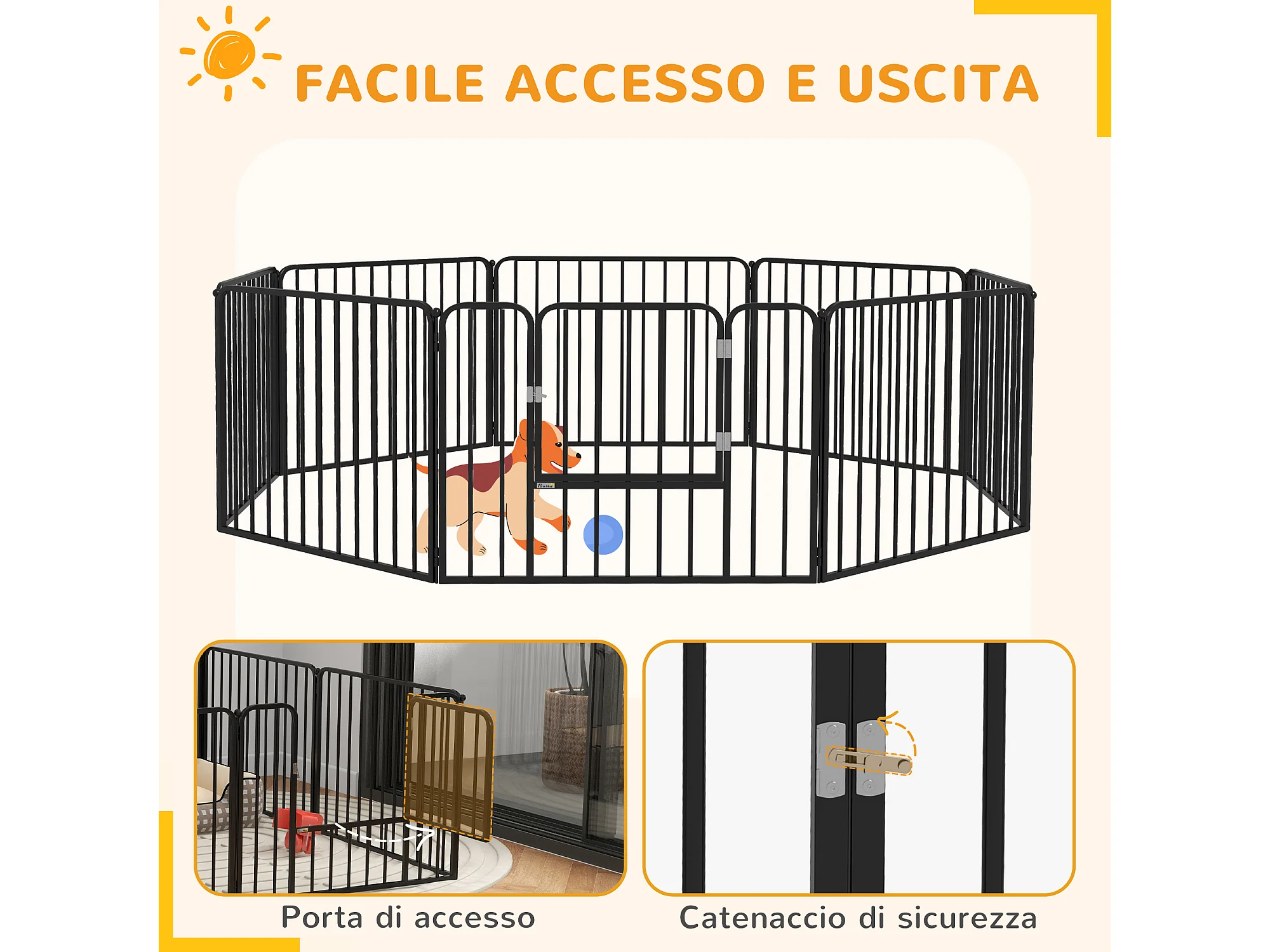 Cancellino per cani a 8 pannelli modulabili in acciaio nero