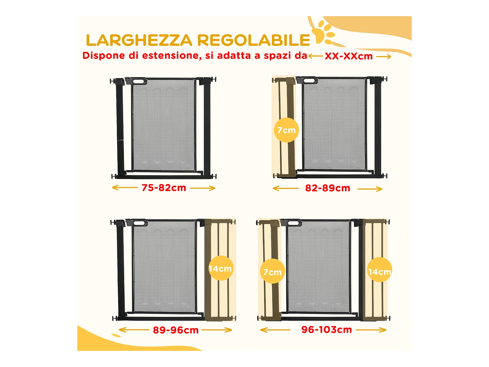 Cancelletto per cani estensibile da 74-80 cm con chiusura automatica nero