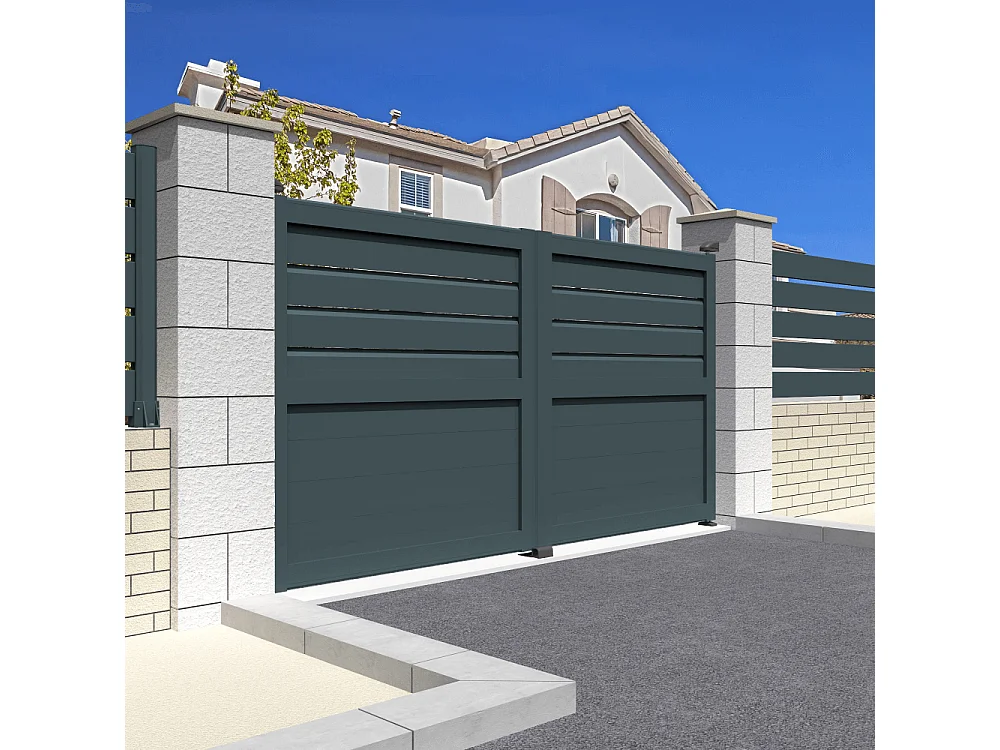 Cancello battente misto motorizzato L 3000 x H 1595 mm - Grigio antracite RAL7016ST