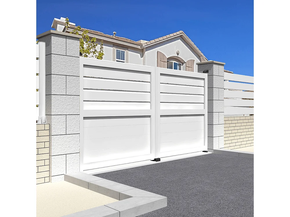 Cancello battente misto motorizzato L 3500 x H 1745 mm - Bianco brillante RAL9010