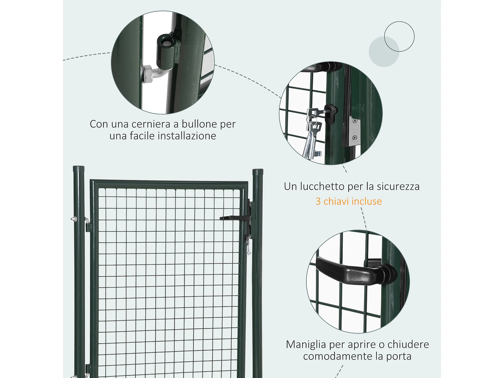 Cancello da giardino in acciaio antiruggine cancelletto da giardino con serratura e 3 chiavi 97x150cm verde
