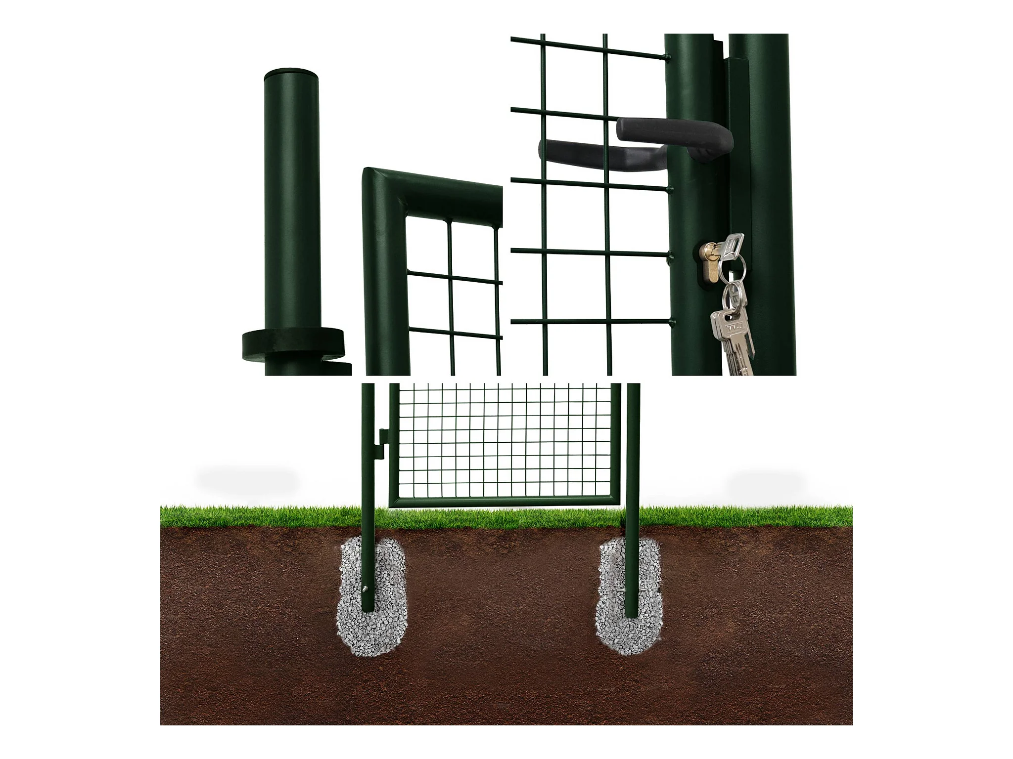 Cancello da giardino in metallo con serratura e maniglia, verde