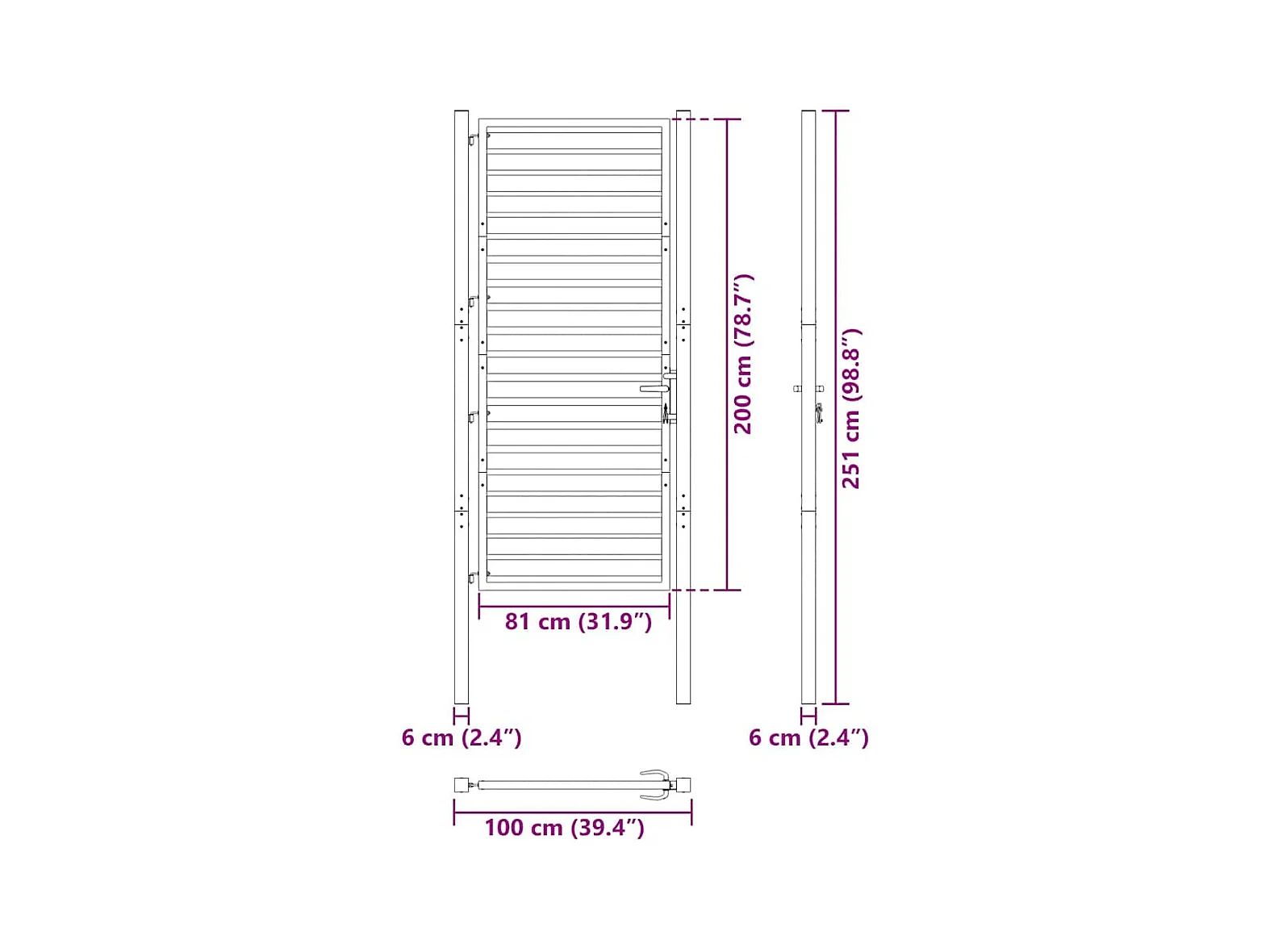 Cancello da giardino, Cancello da giardino 105x200 cm in acciaio Corten