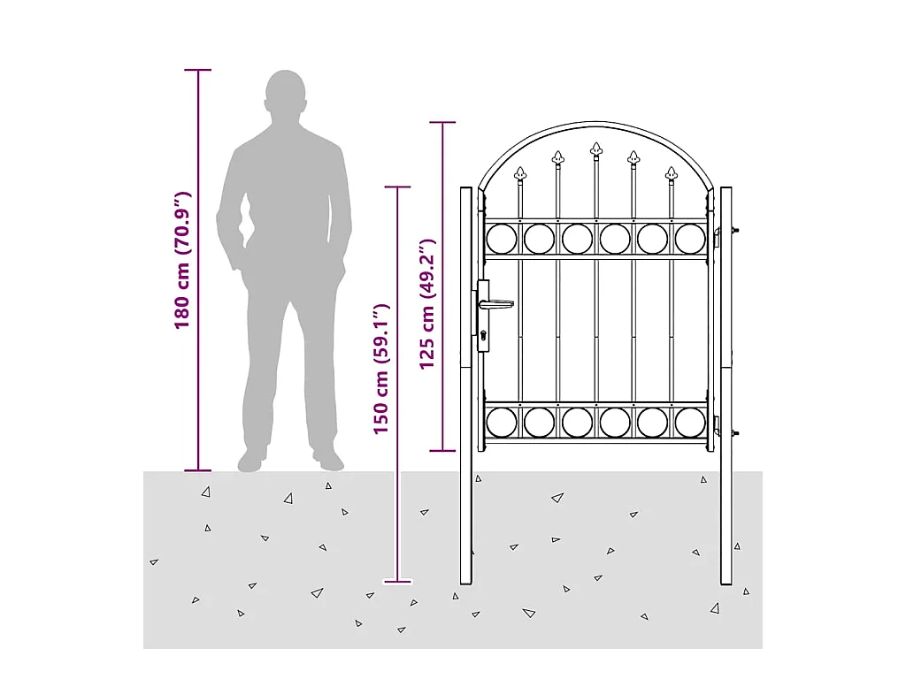 Cancello per recinzione grigio 100 x 175 cm in acciaio verniciato a polvere