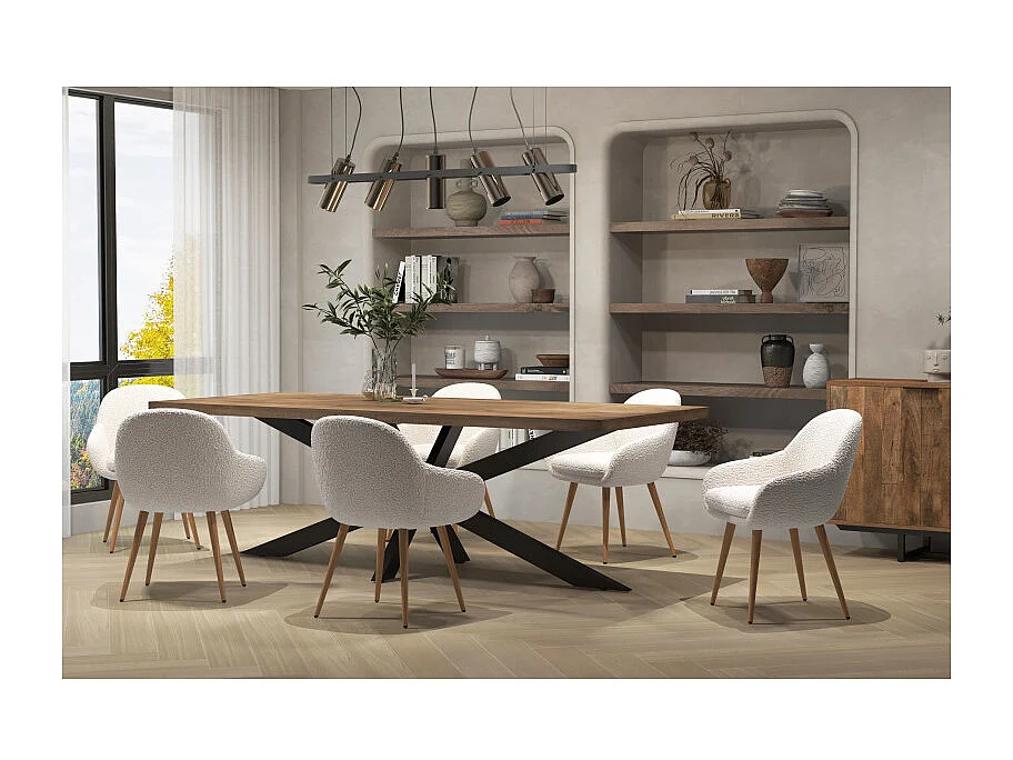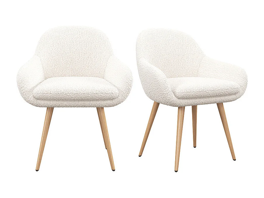 CANCUN-Sedia in tessuto Ecru e gambe con decoro legno (x2)