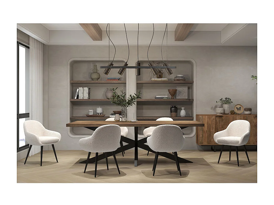 CANCUN-Sedia in tessuto Ecru e gambe in metallo nero (x2)