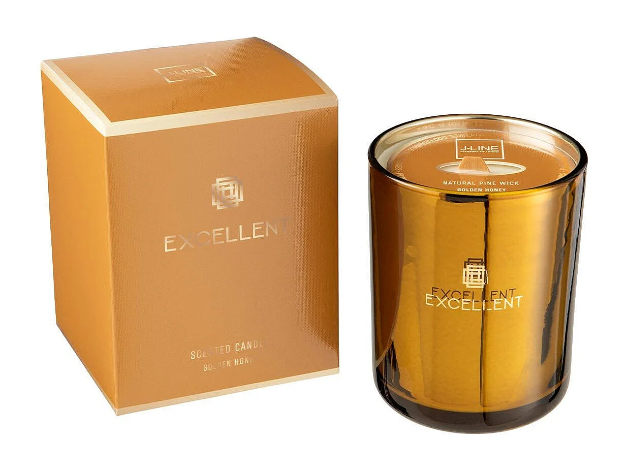 Candela profumata 40H in vetro ocra 14x14x10 cm