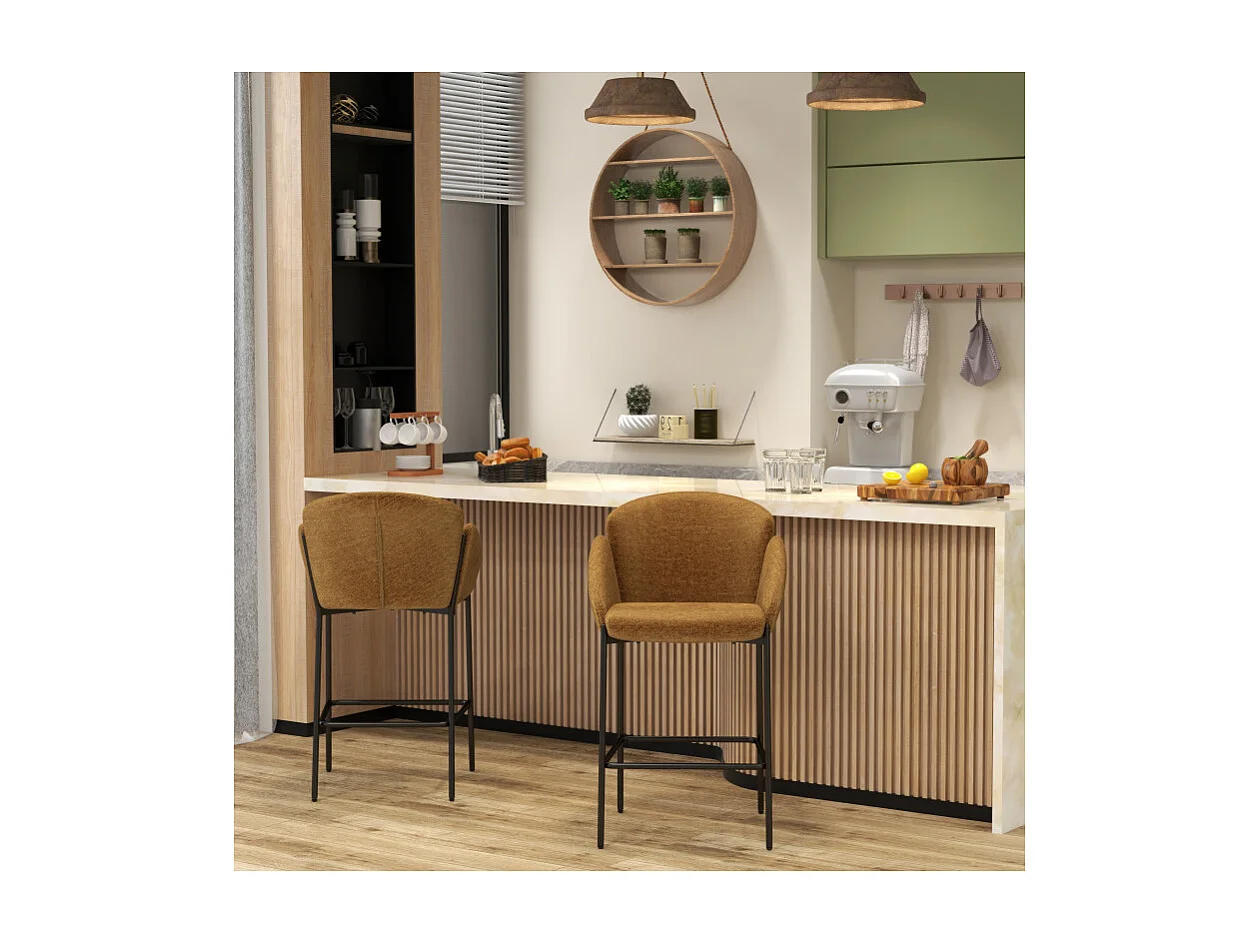 CANDICE-Sedia da bar in tessuto senape (x2)