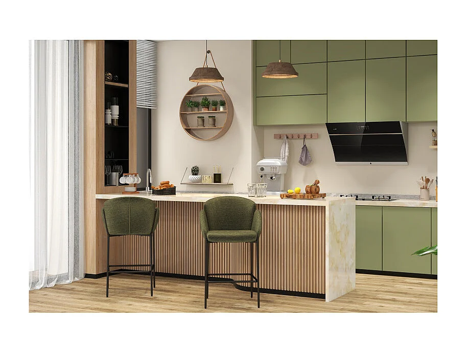 CANDICE-Sedia da bar in tessuto verde (x2)