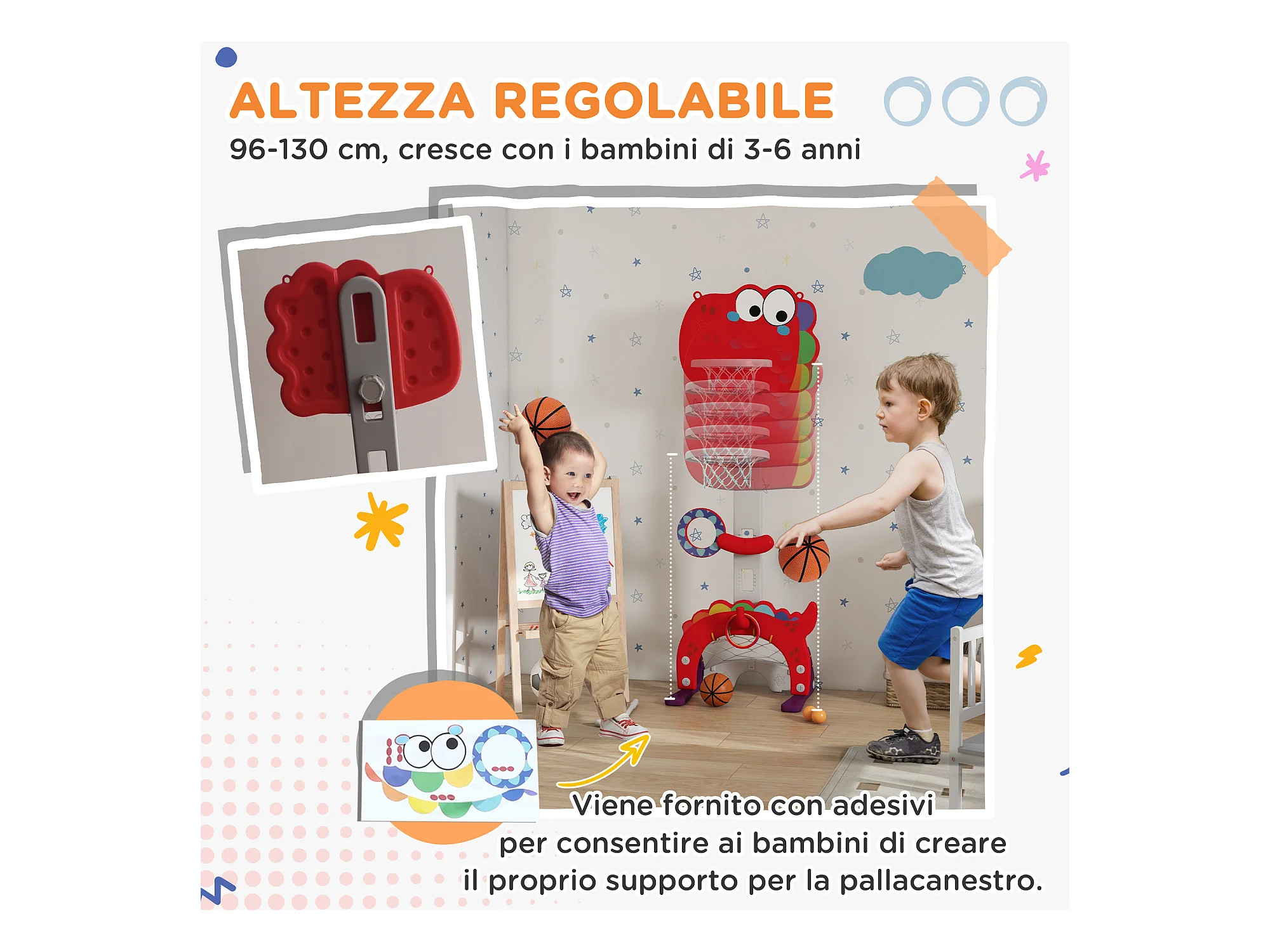 Canestro basket per bambini 3-6 anni 5 in 1 altezza regolabile rosso