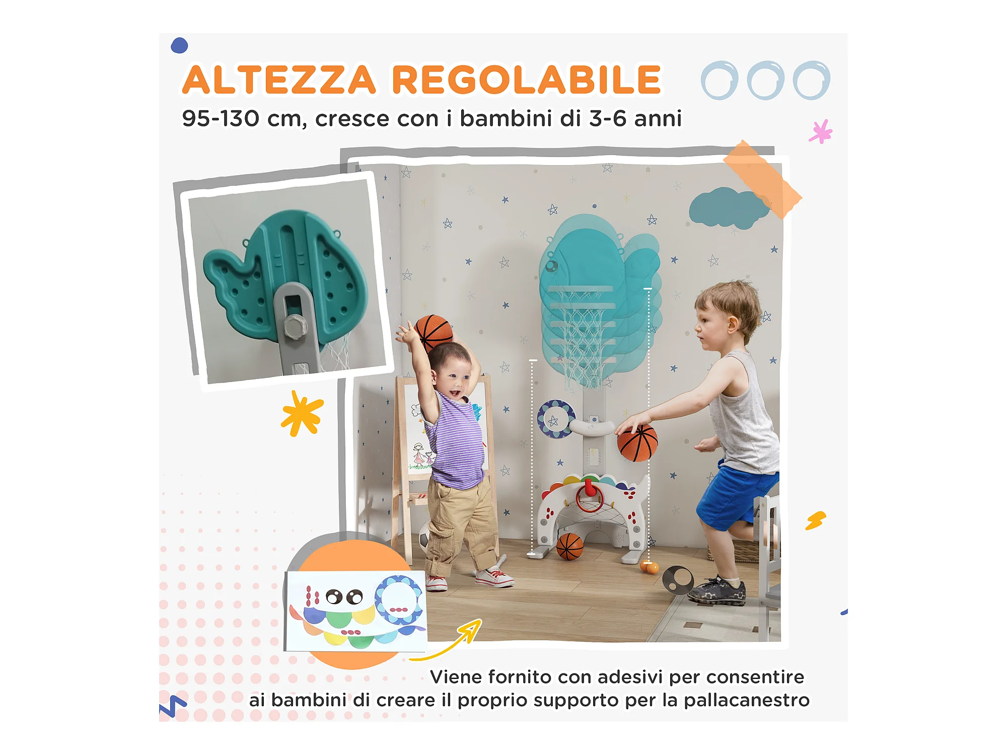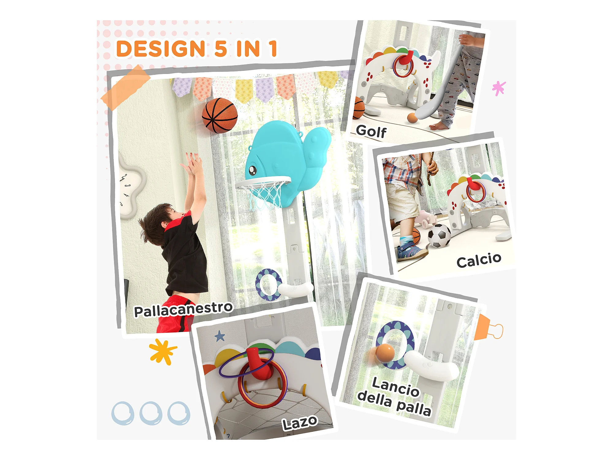 Canestro basket per bambini 3-6 anni 5 in 1 con altezza regolabile