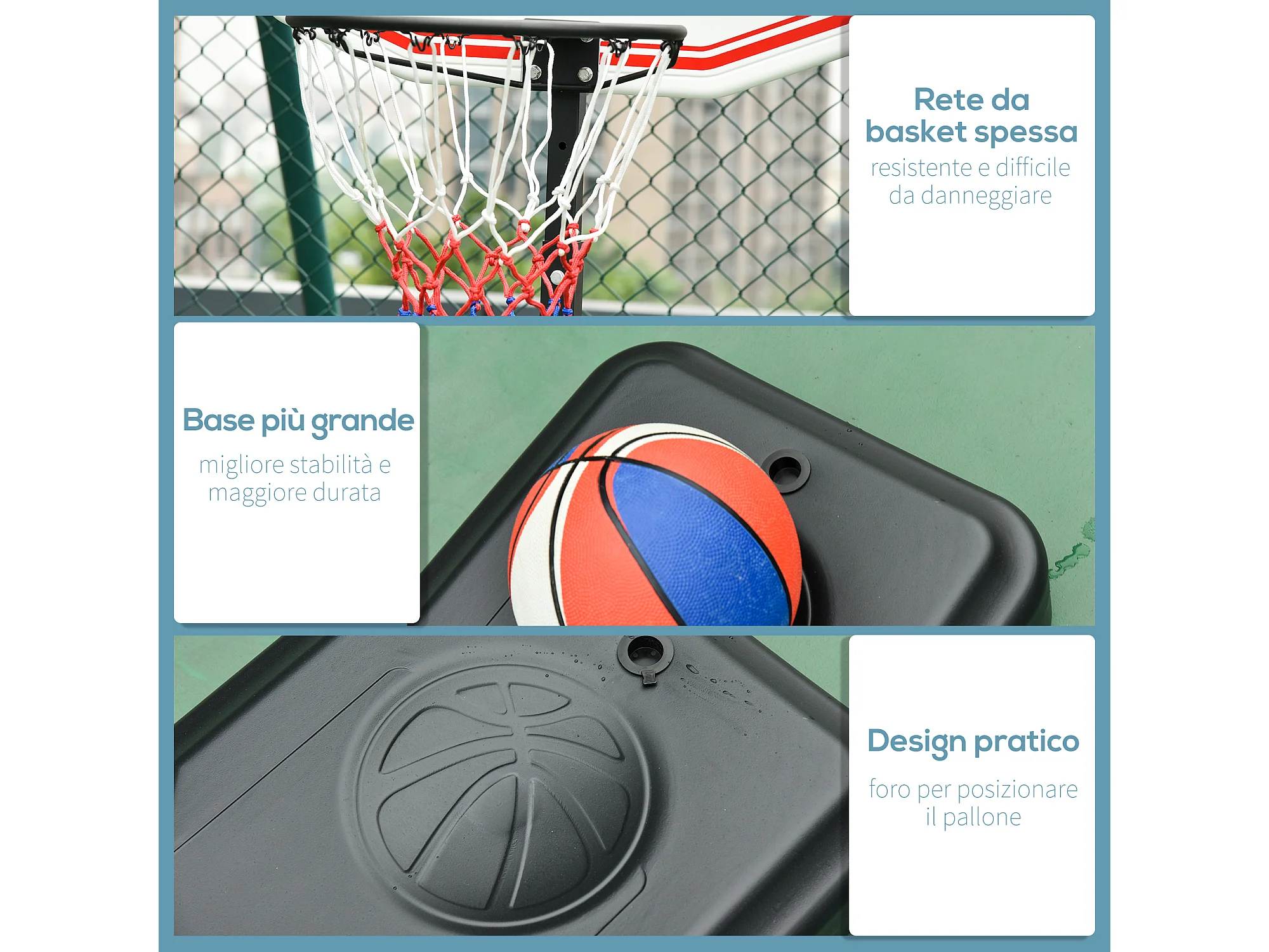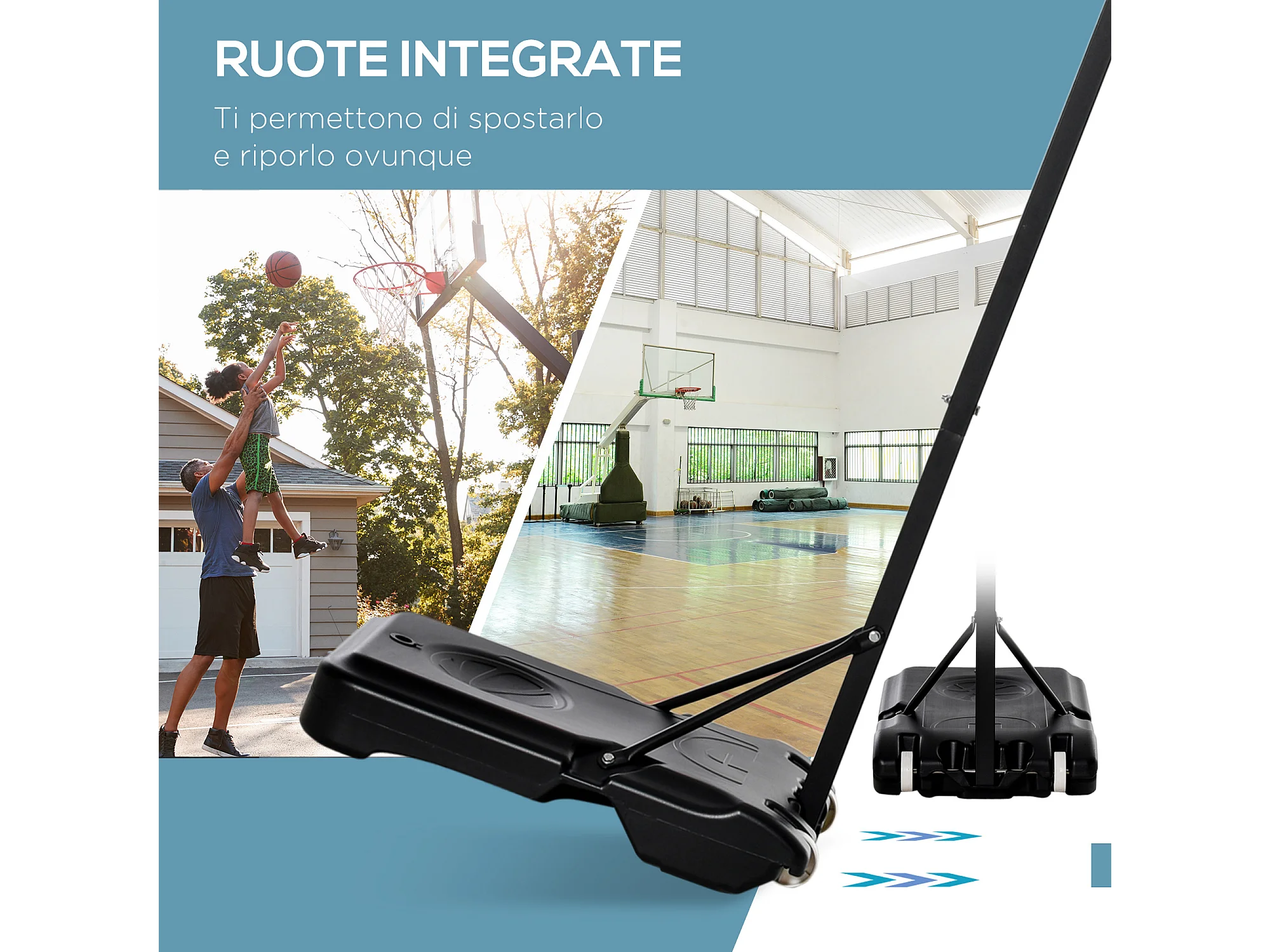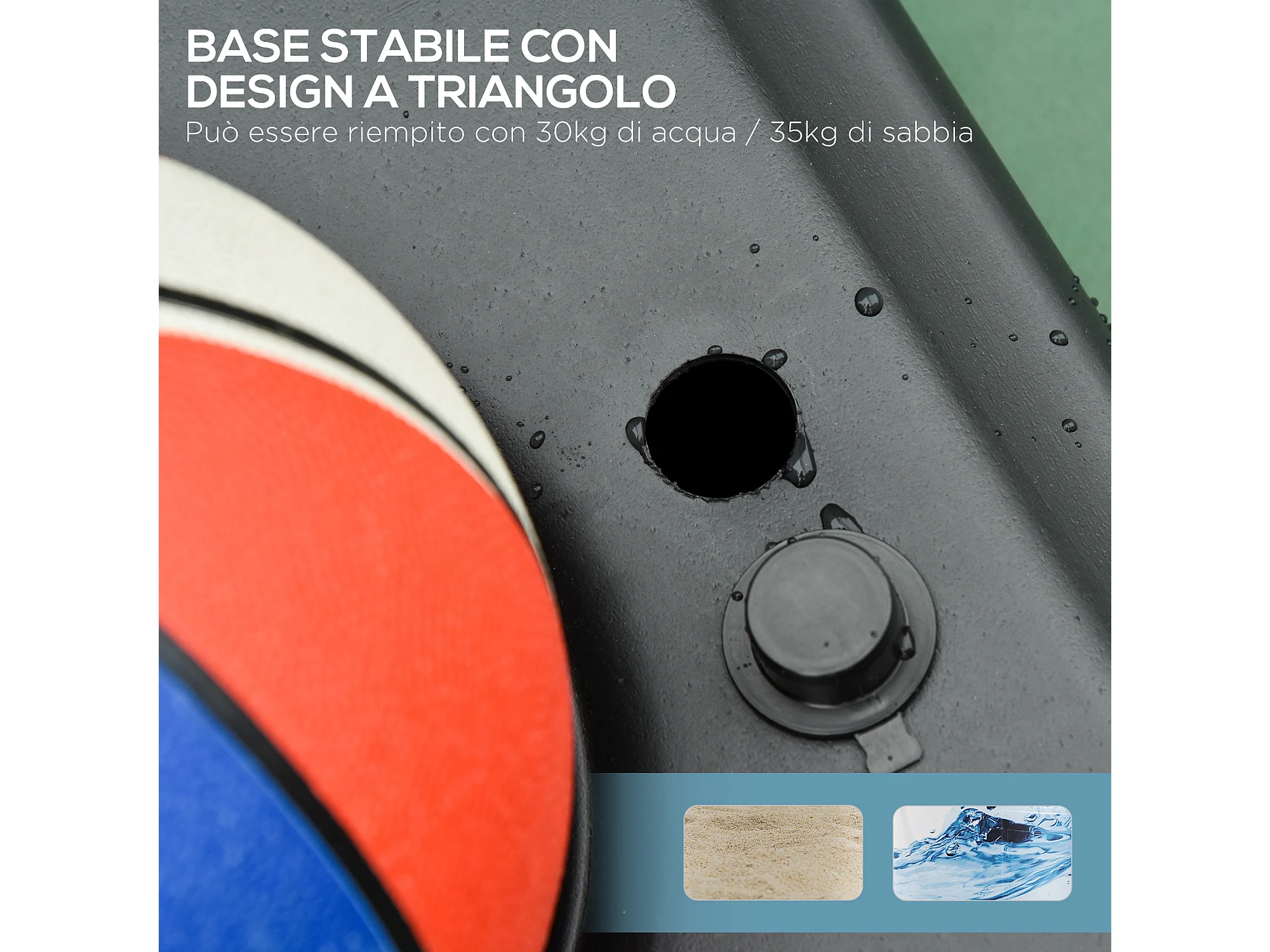 Canestro basket esterno regolabile 146-236cm ruote e base riempibile