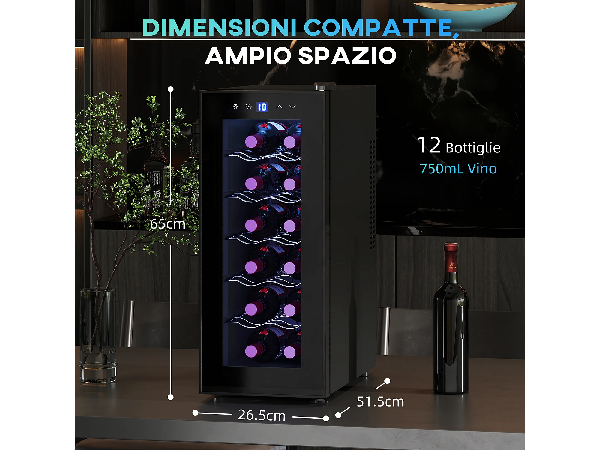 Cantinetta frigo per 12 bottiglie display touch e ripiani regolabili