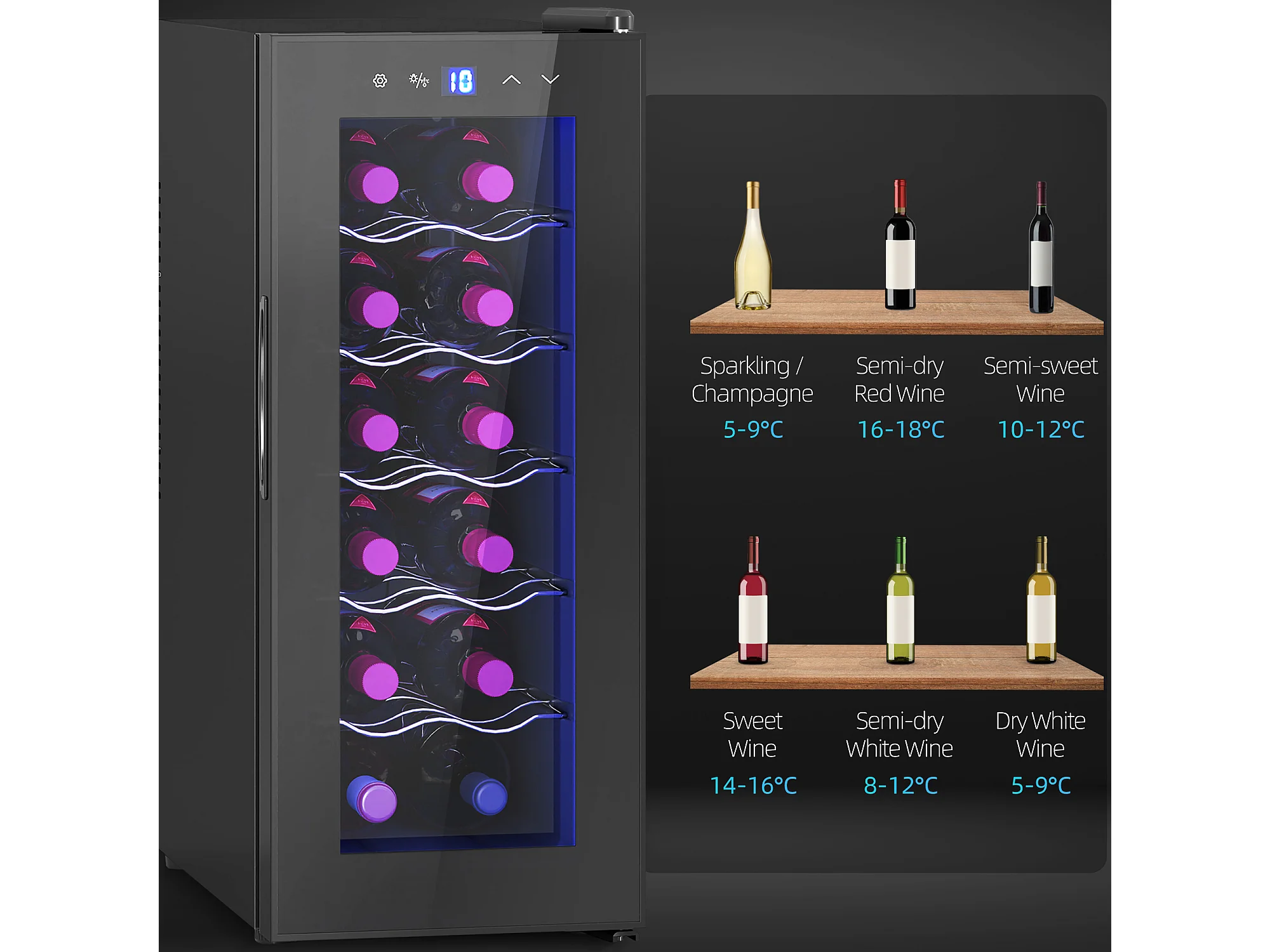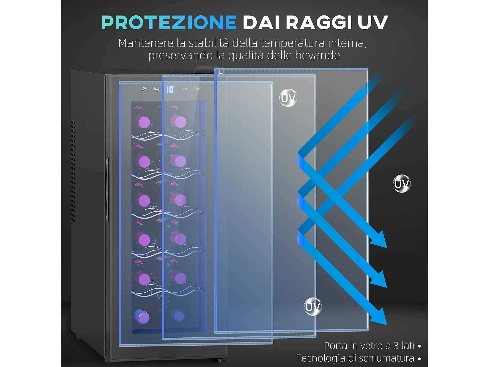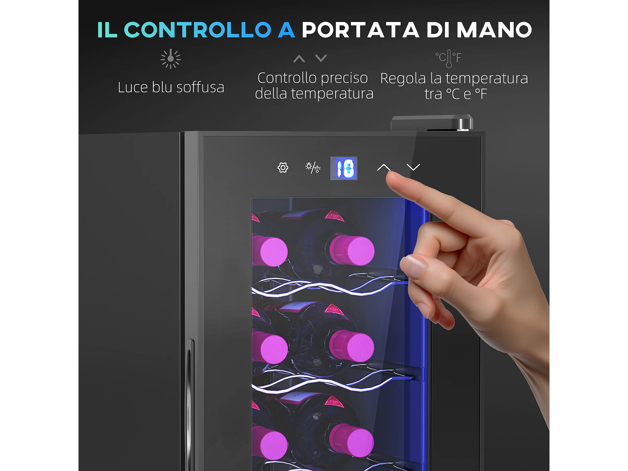Cantinetta frigo per 18 bottiglie con display touch e luce led