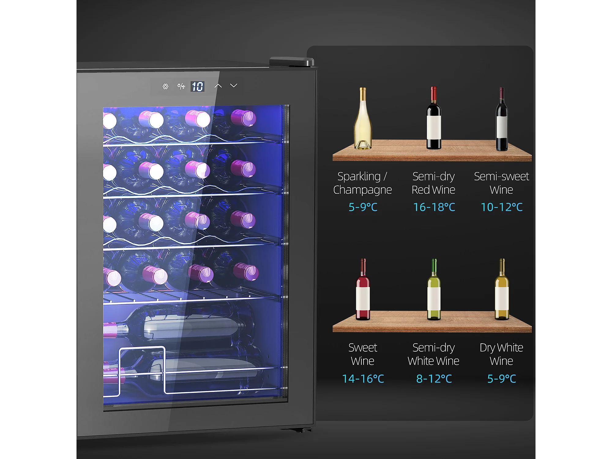 Cantinetta Frigo Vino 78L 28 Bottiglie Porta in Vetro LED Pannello Touch 8–18°C Nero