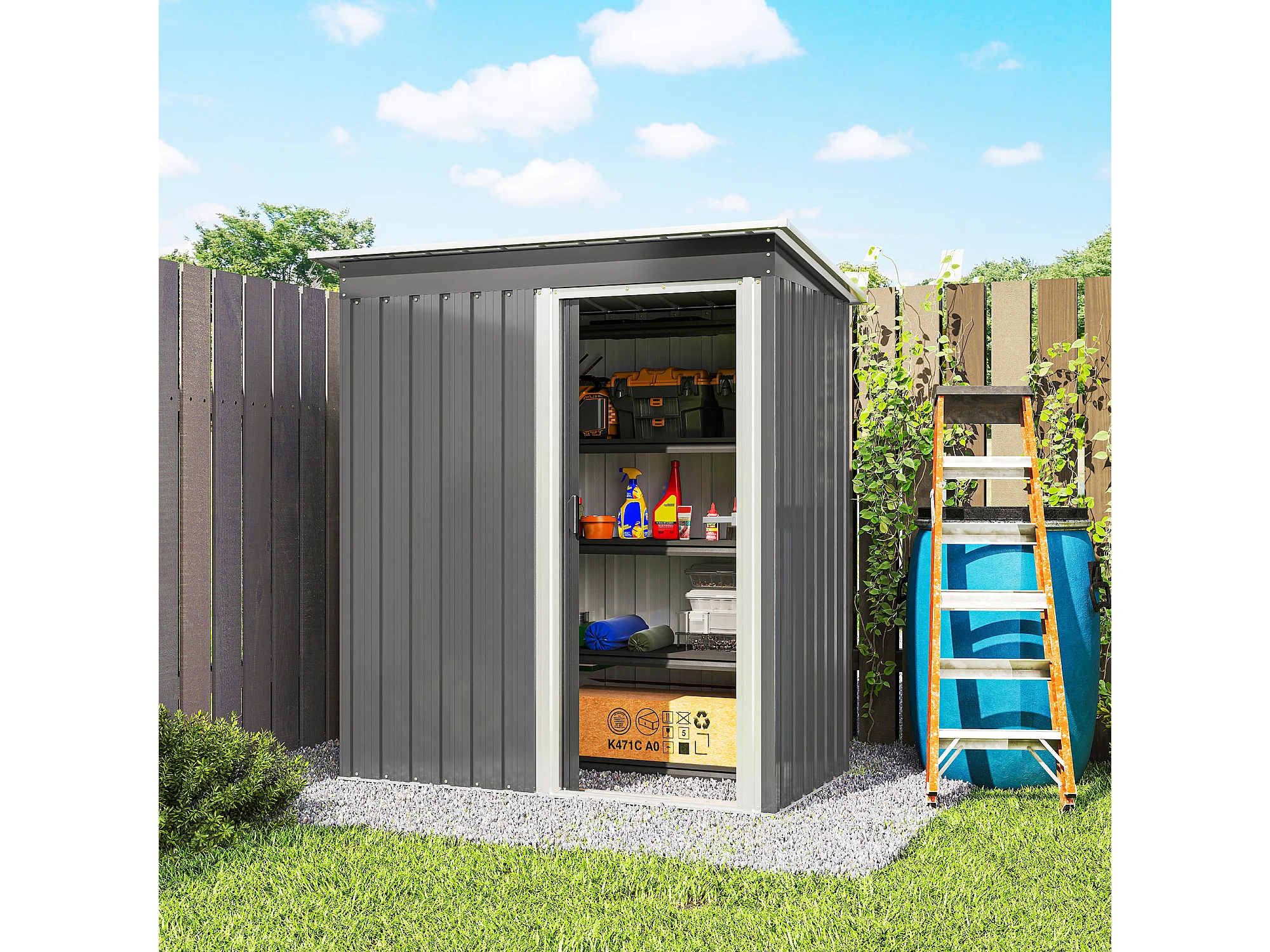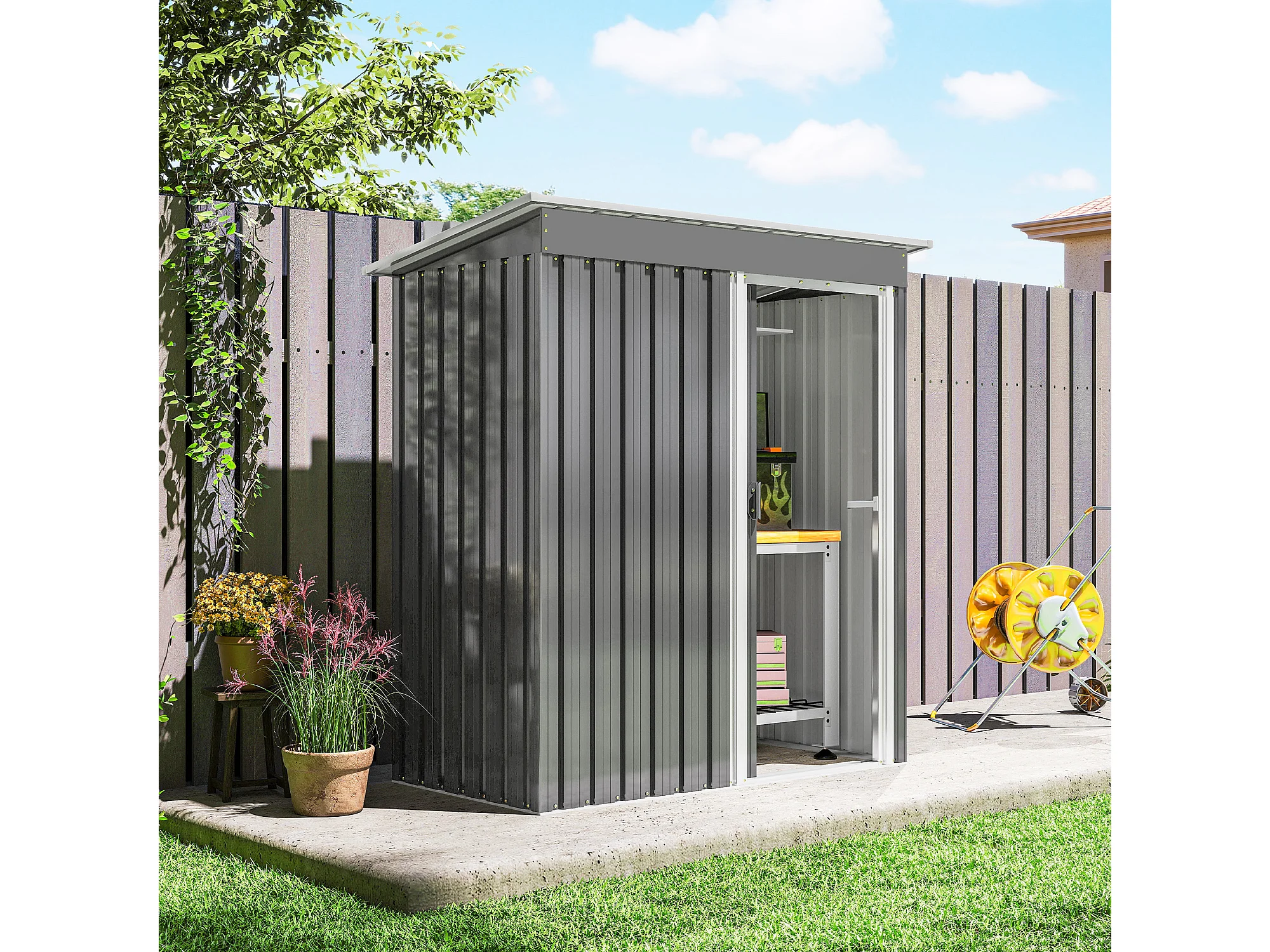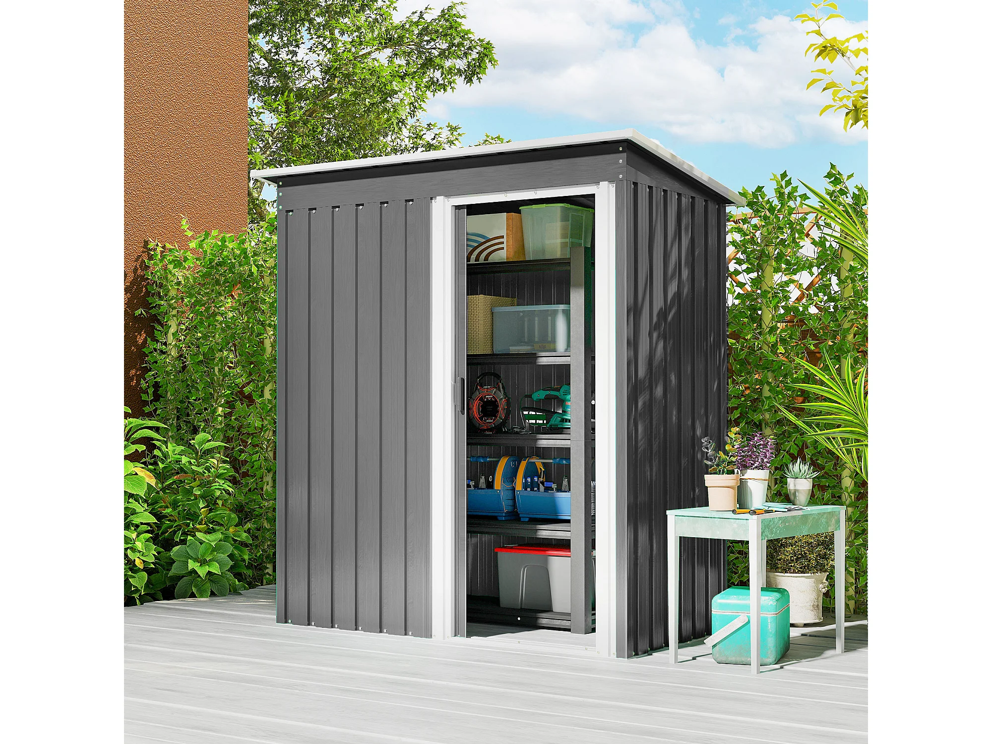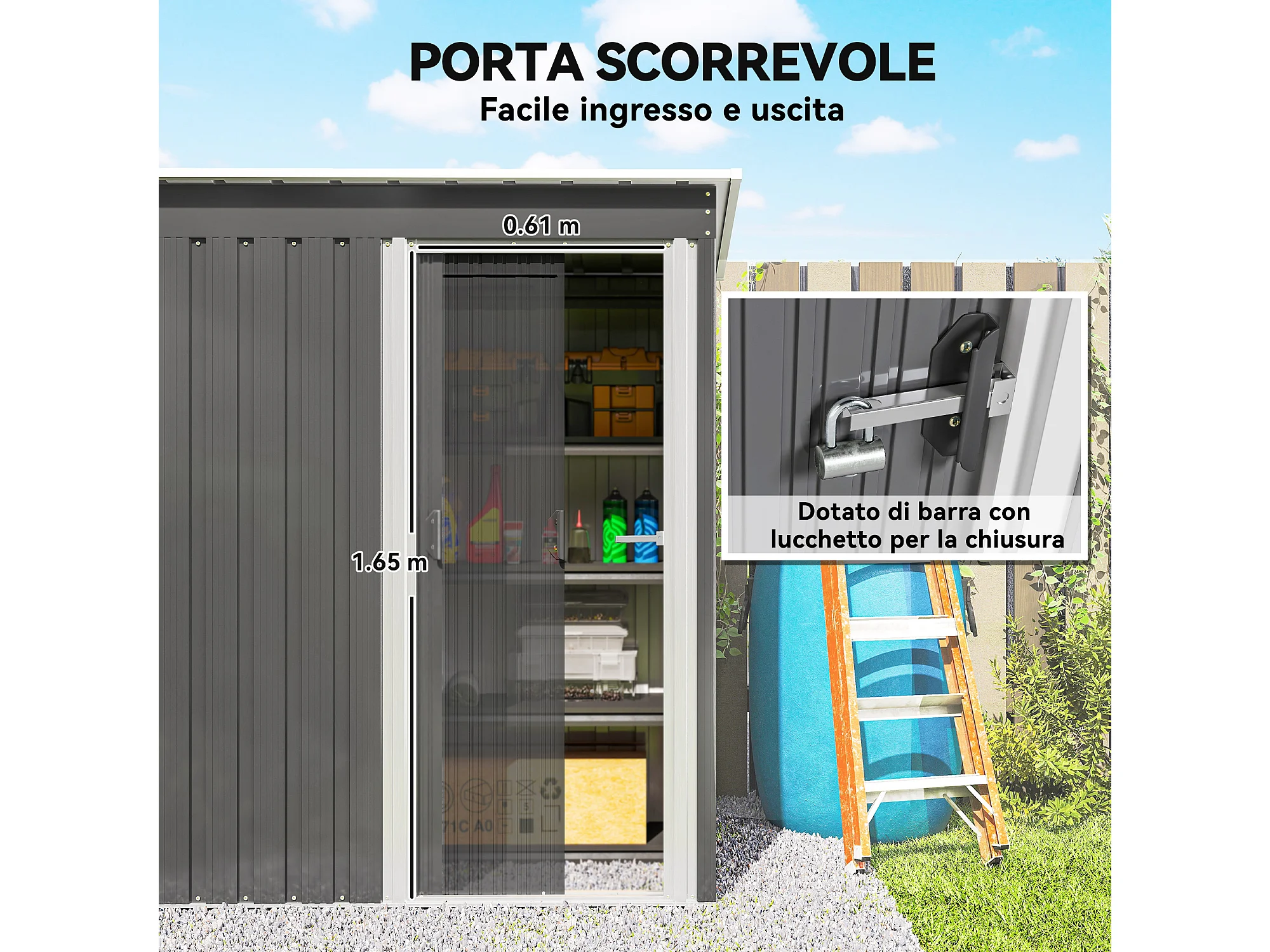 Capanno attrezzi con tetto inclinato in acciaio e pp grigio chiaro