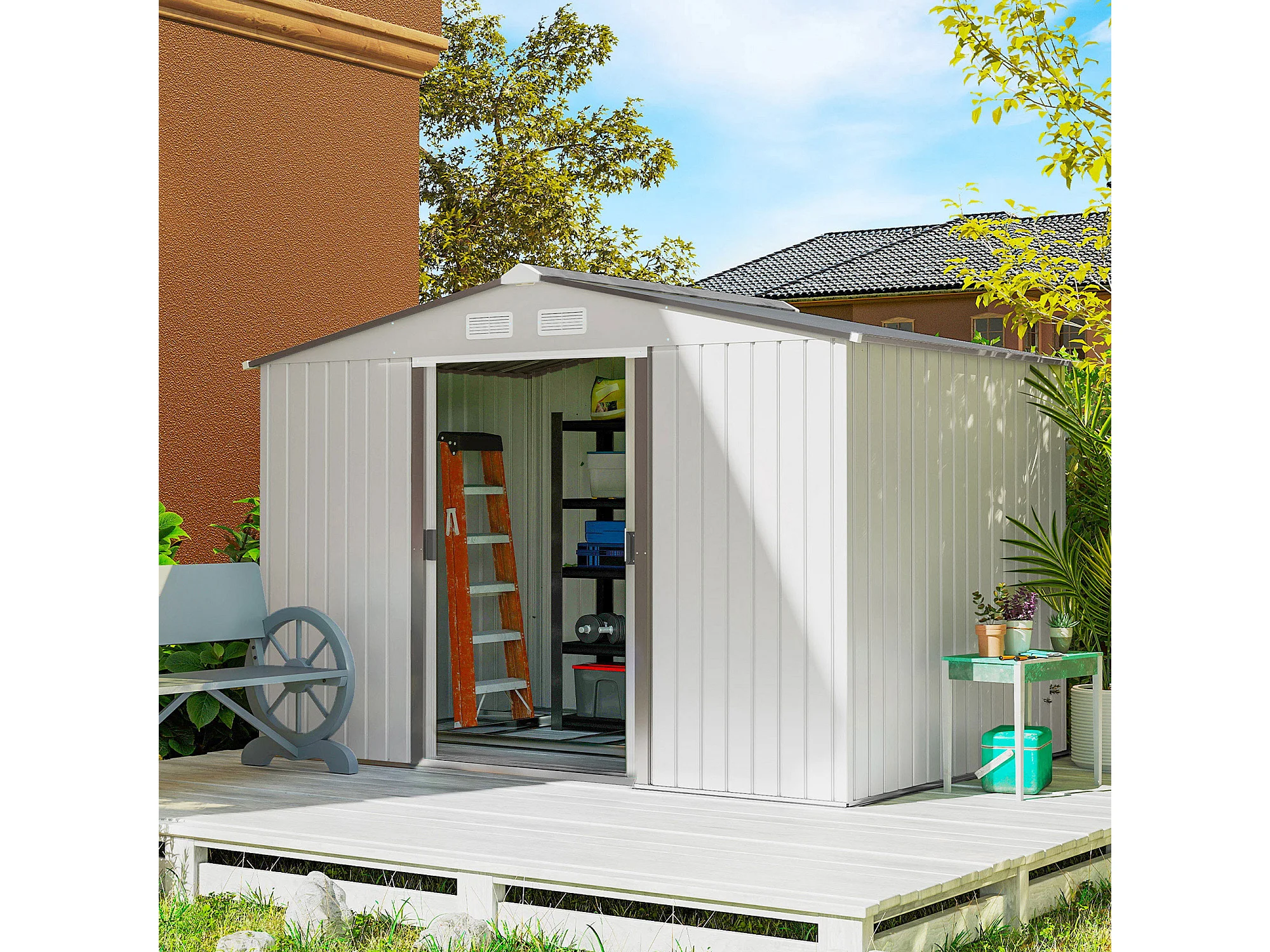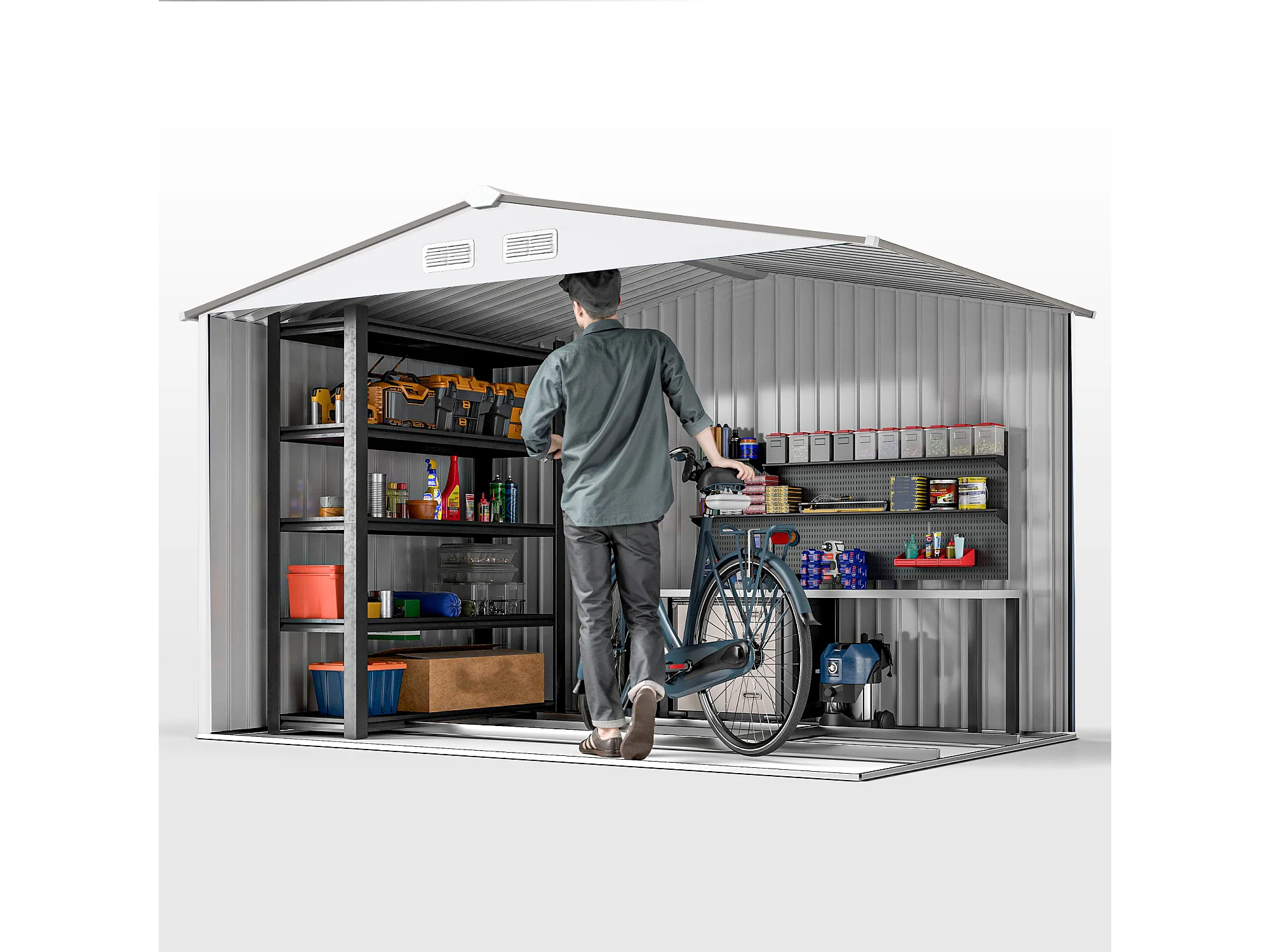 Capanno attrezzi in acciaio con porte scorrevoli