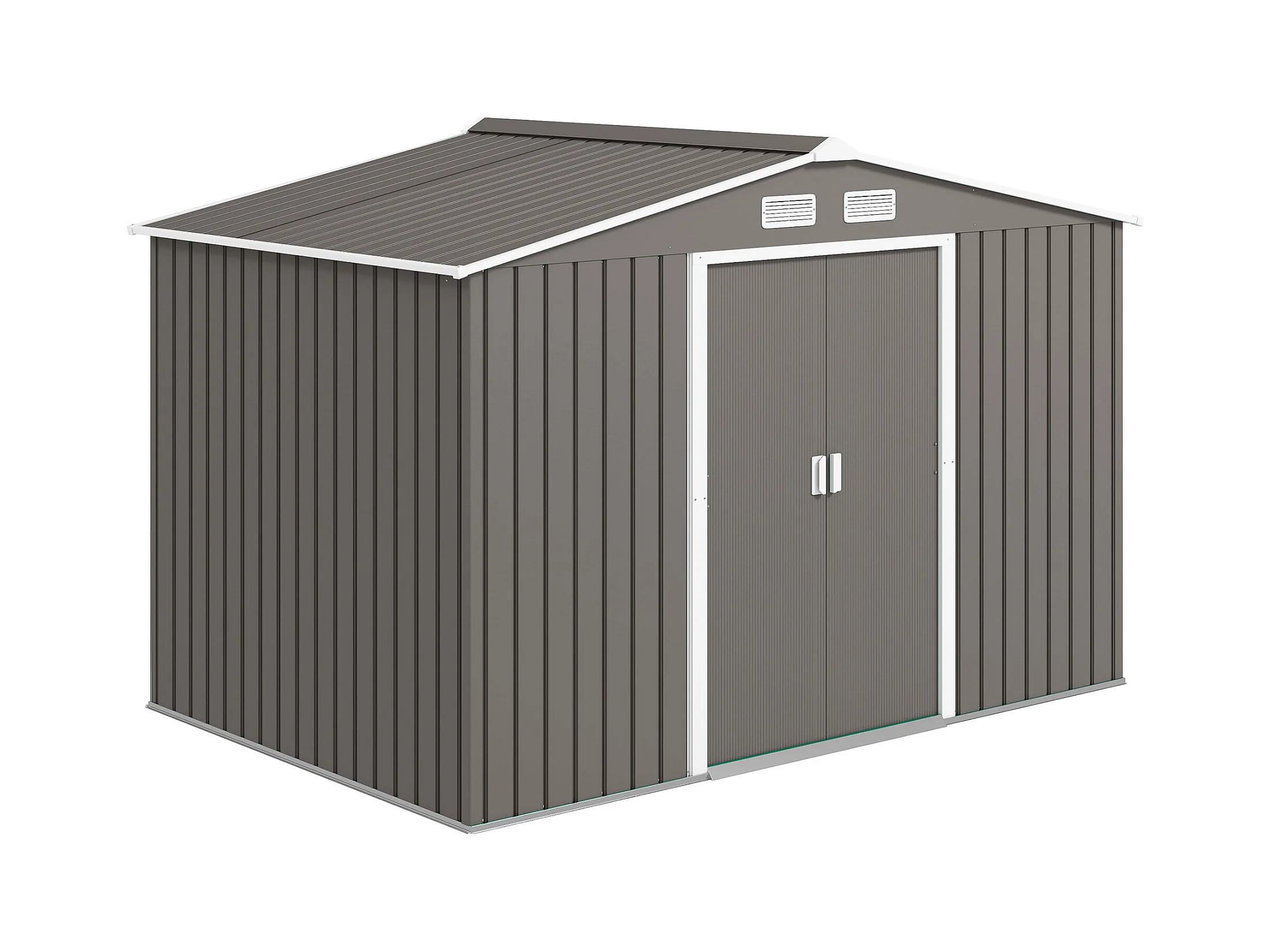 Casetta da giardino con porte scorrevoli e lucchetto in metallo grigio