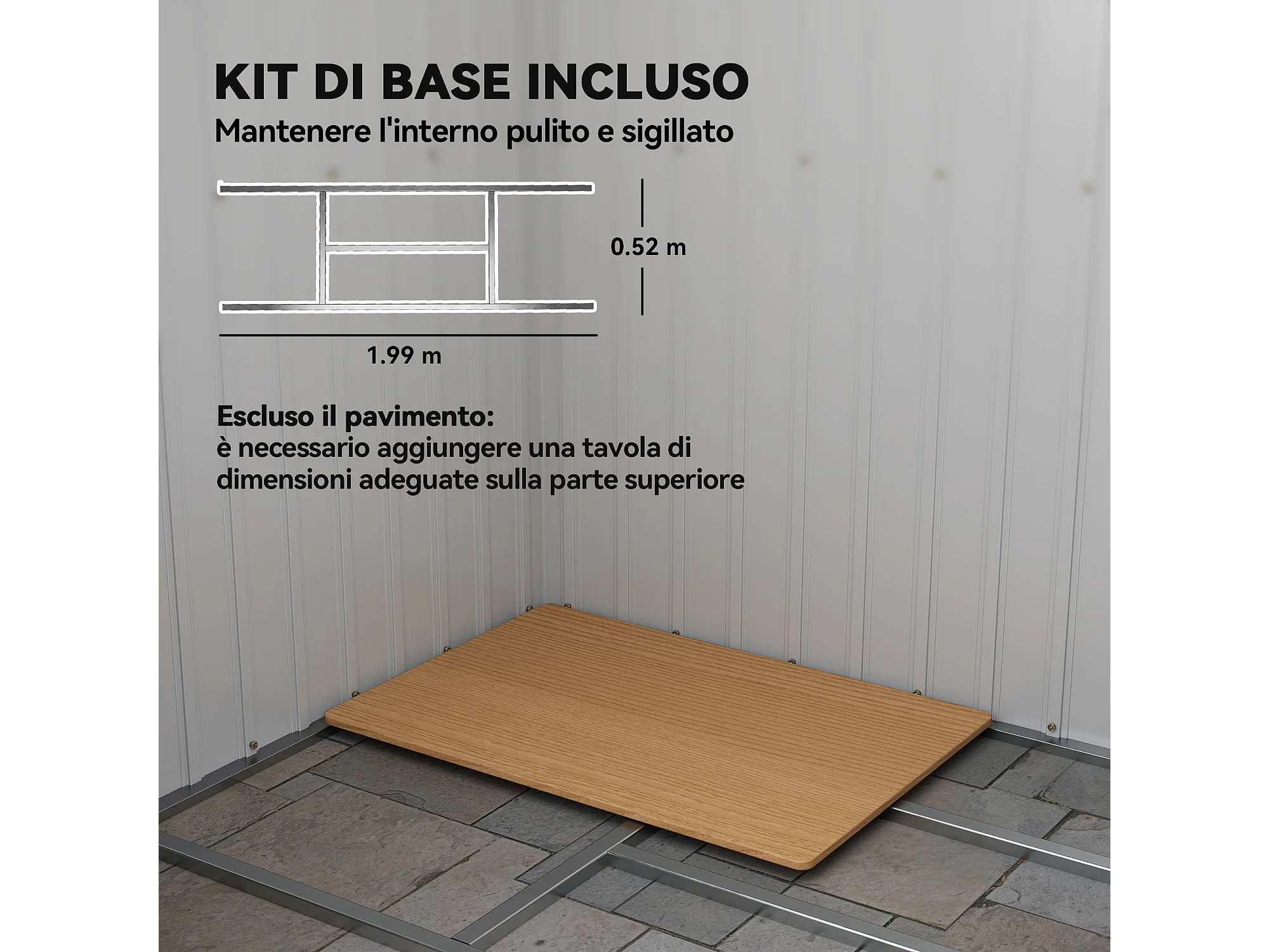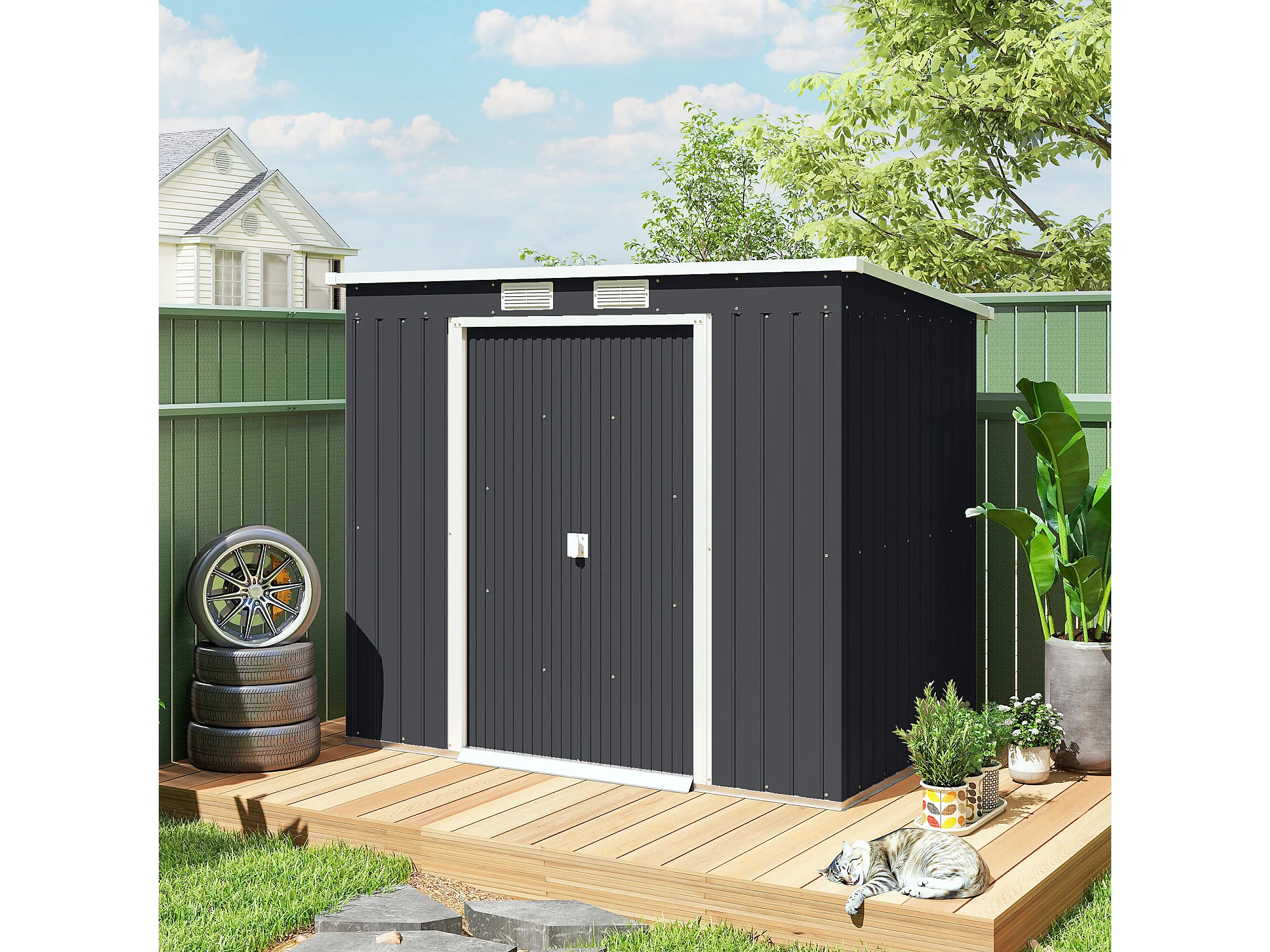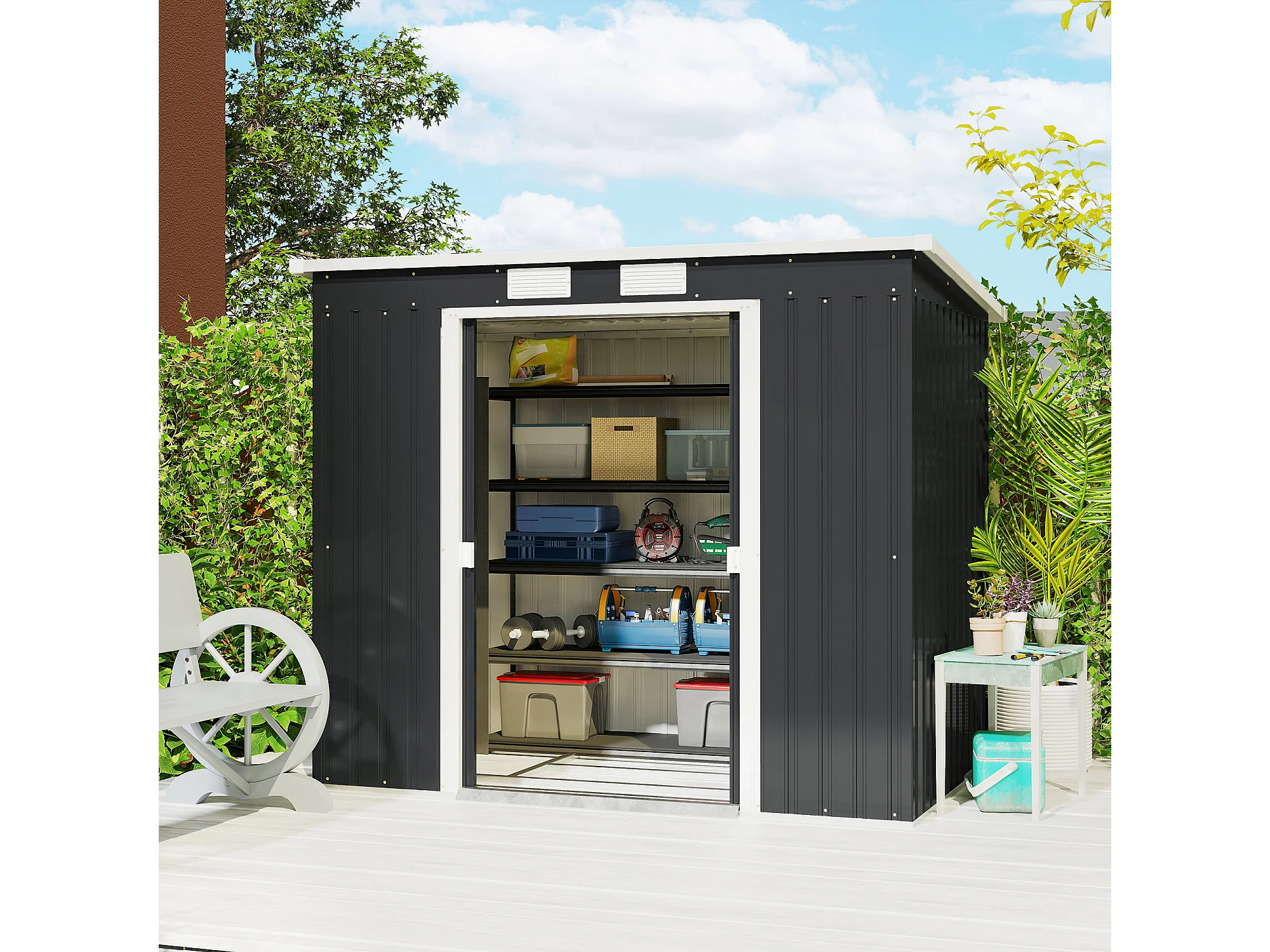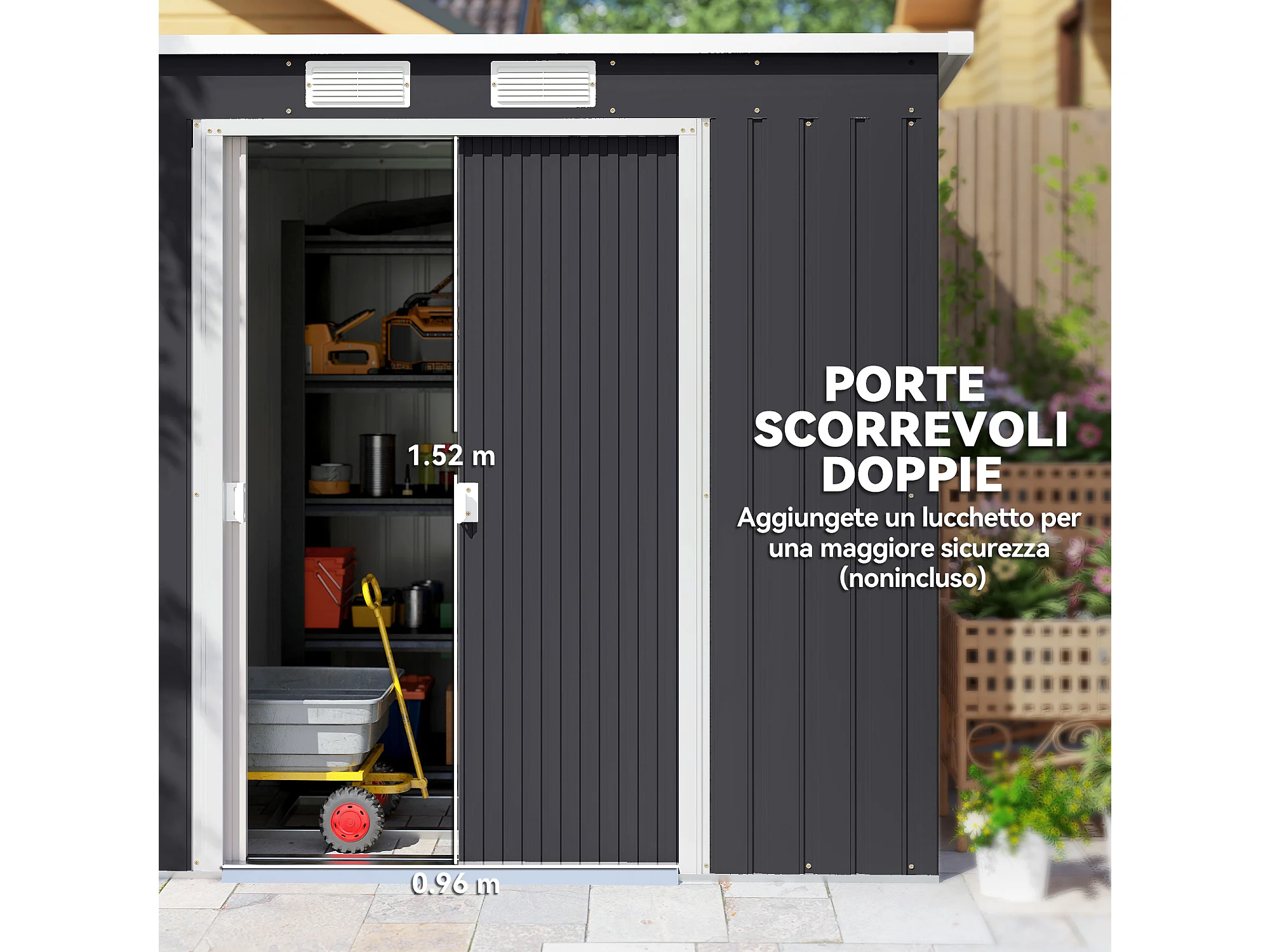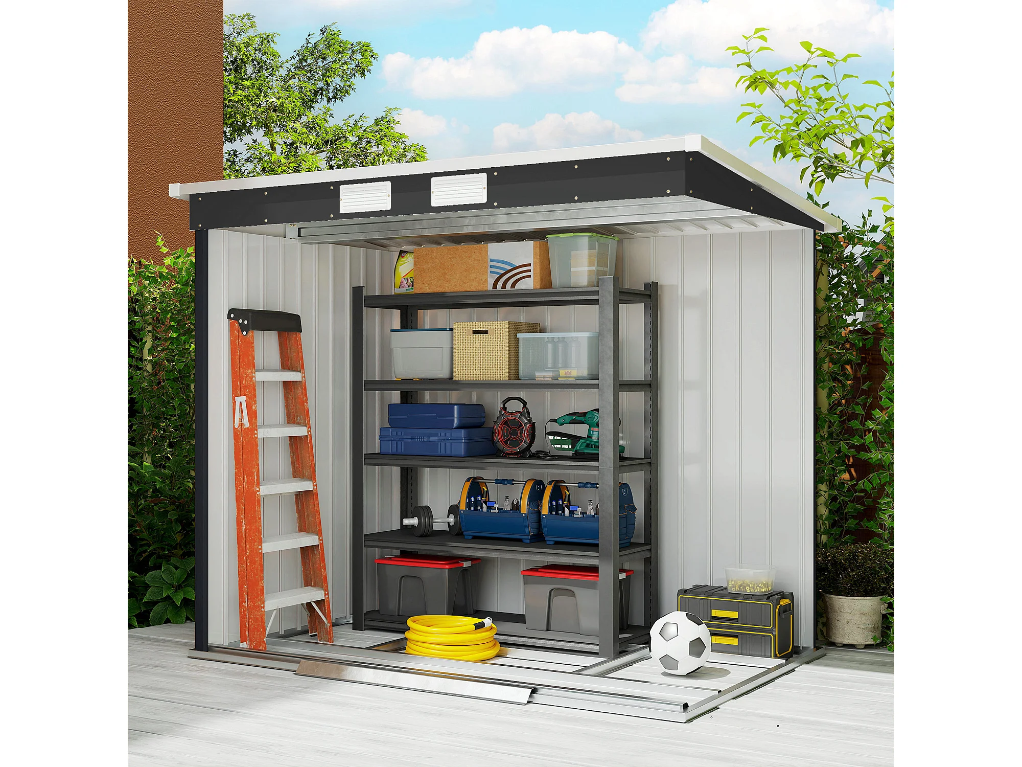 Capanno attrezzi in acciaio zincato con tetto inclinato grigio scuro