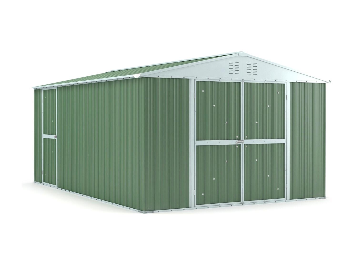 Capanno box attrezzi i per esterno casetta giardino in lamiera 327x459cm x h 215cm - 201 kg - 15,01 mq - VERDE