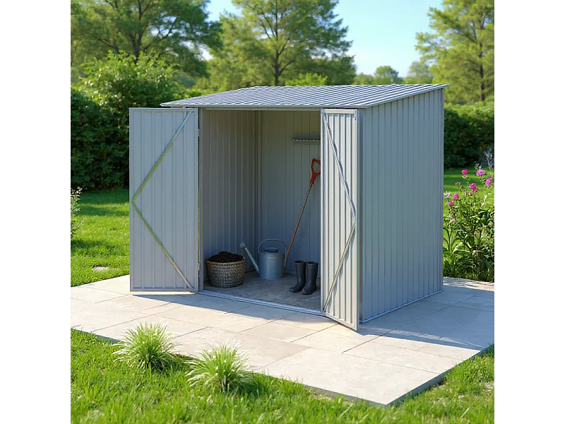 Casetta da giardino in metallo monopendenza - LEGNO VECCHIO - 3,31 m²