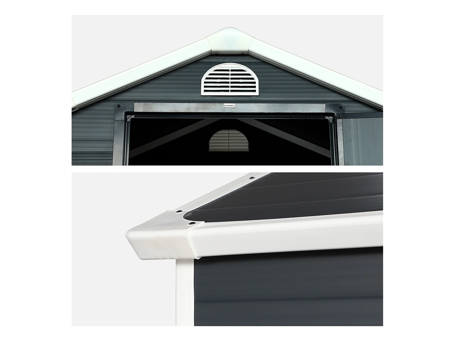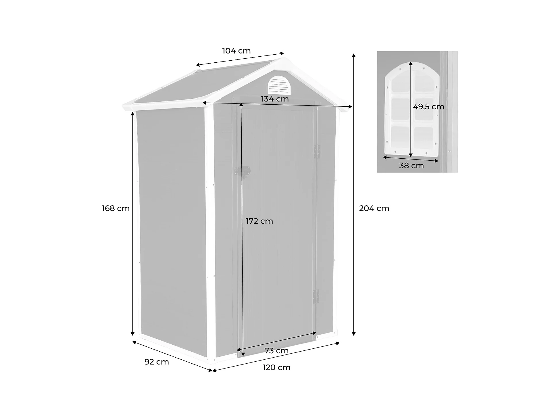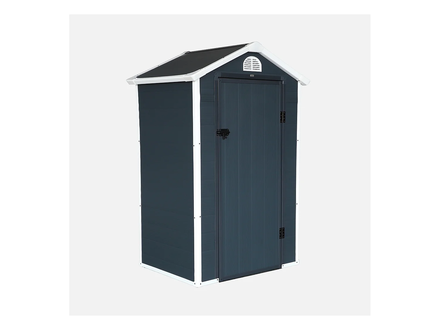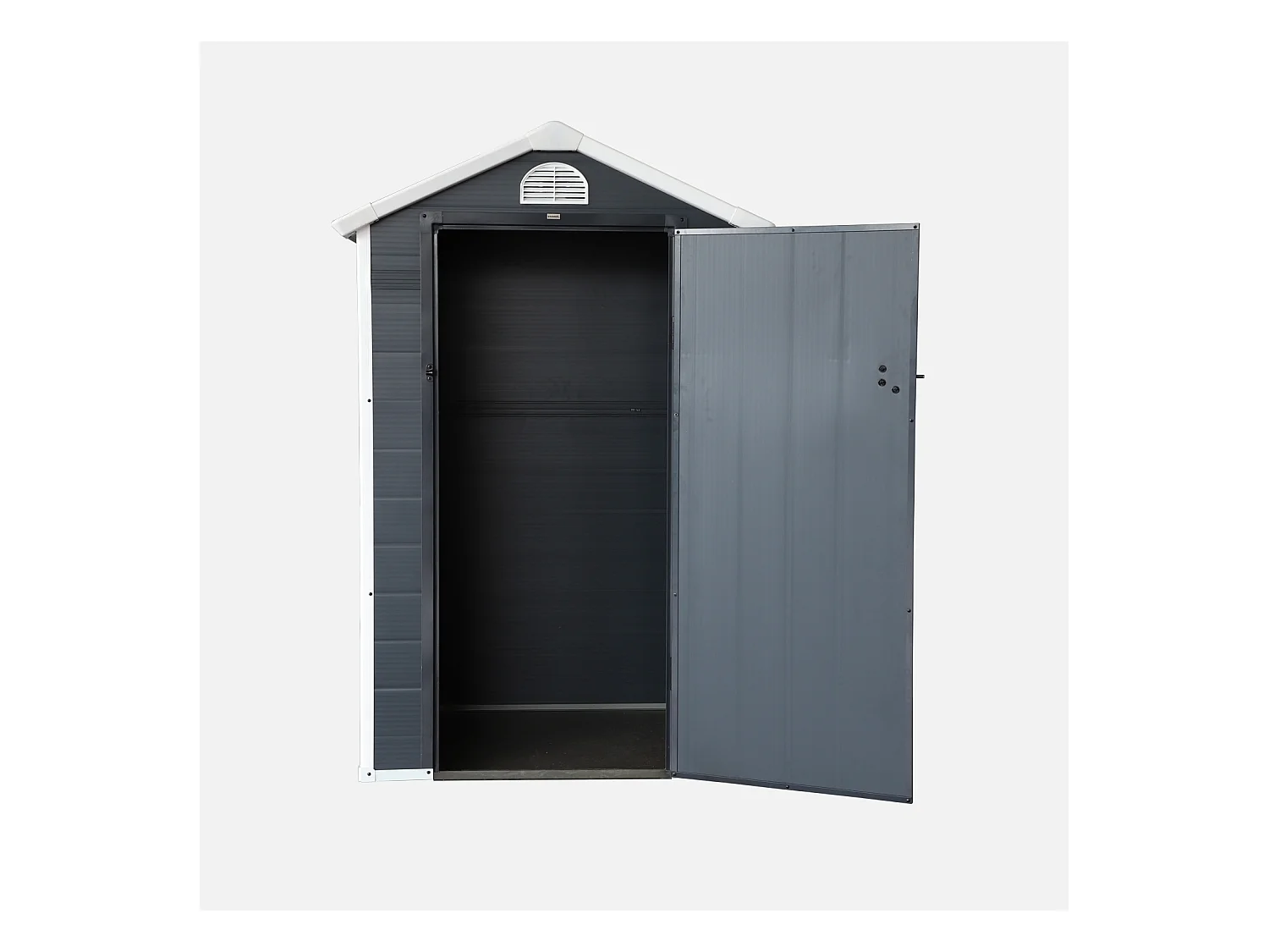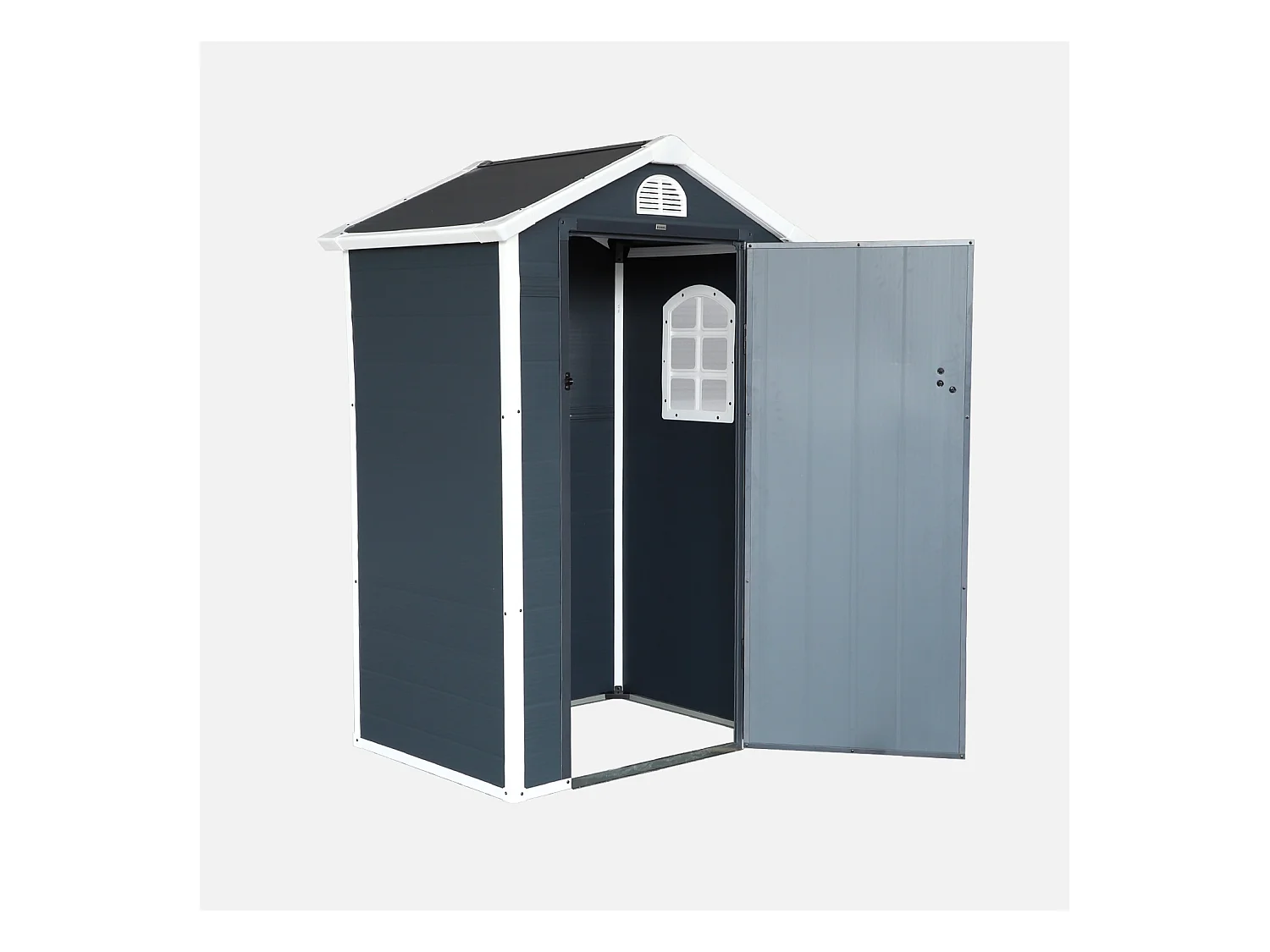 Casetta da giardino in metallo con finestra di ventilazione, tetto a capanna, grigia (134x104x204cm)