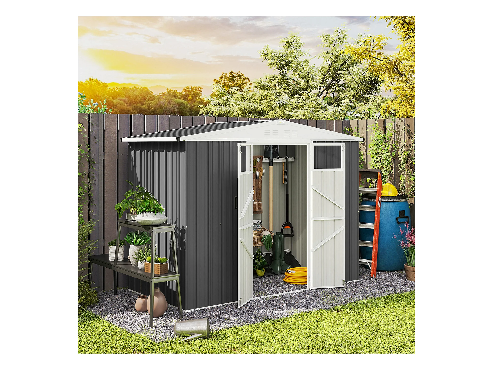 Capanno da giardino porta attrezzi con doppia porta grigio scuro