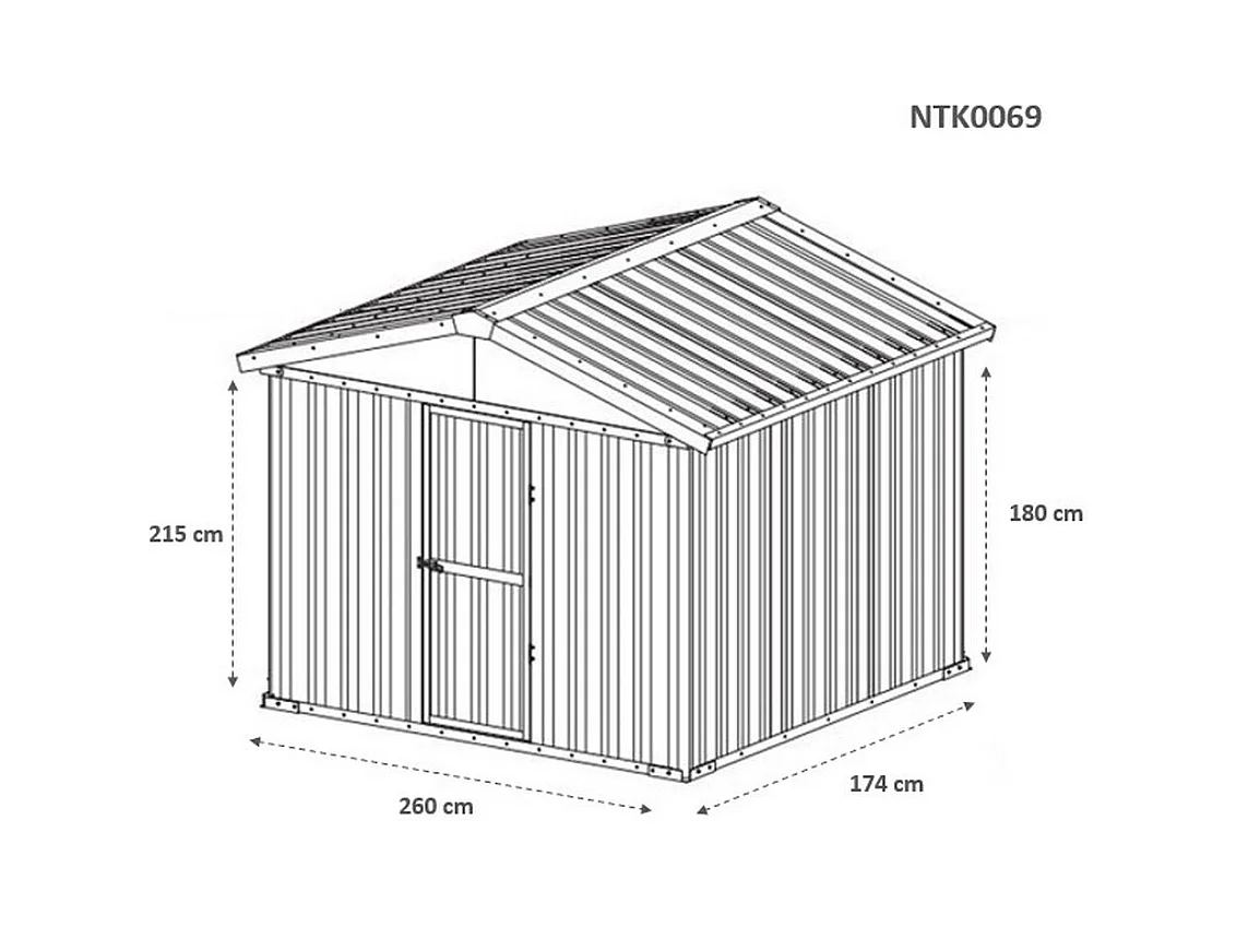 Casetta giardino in lamiera Box in Acciaio Zincato 260x185cm x h1.92m - 85kg - 4,81mq - FINITURA LEGNO