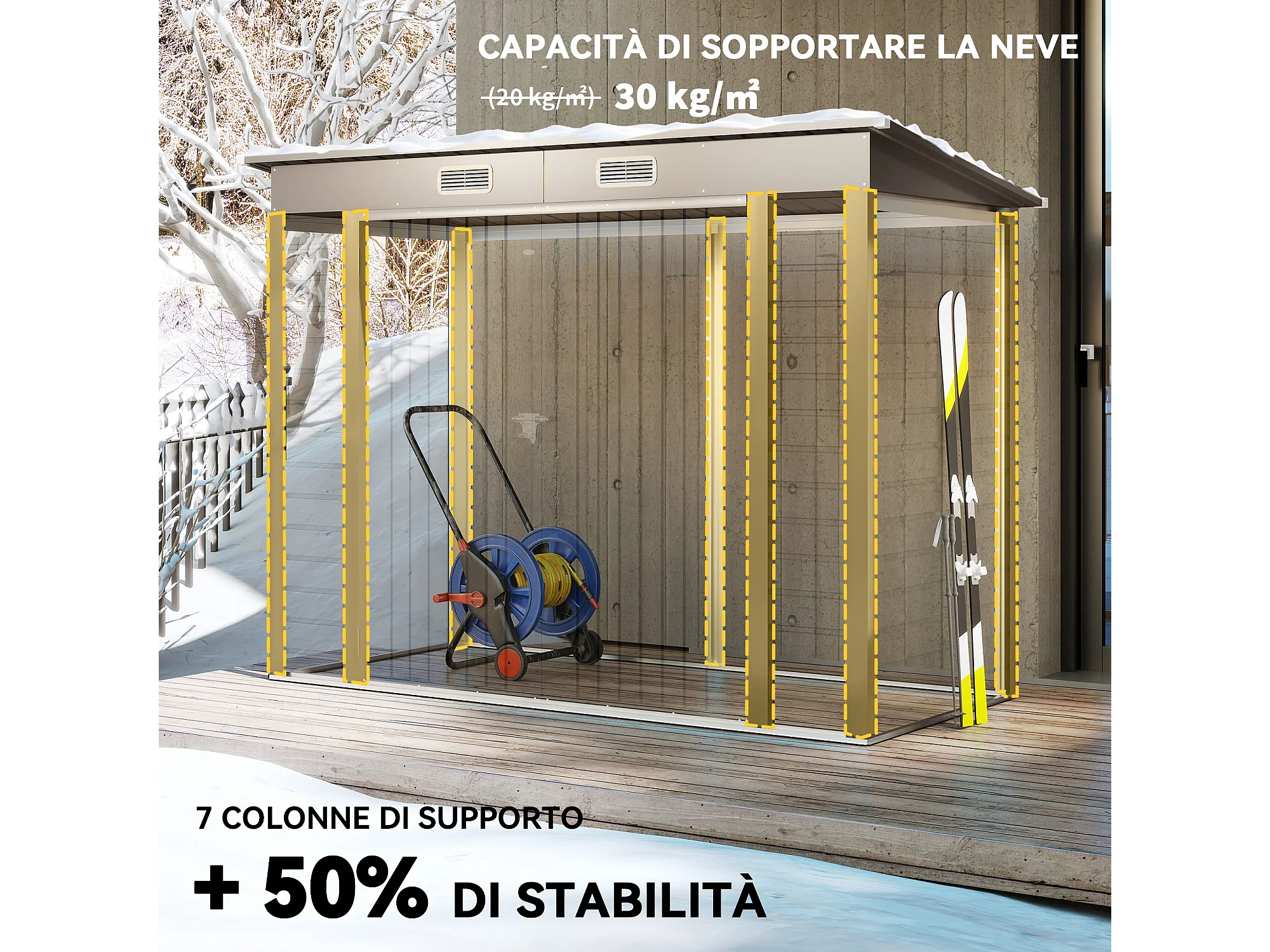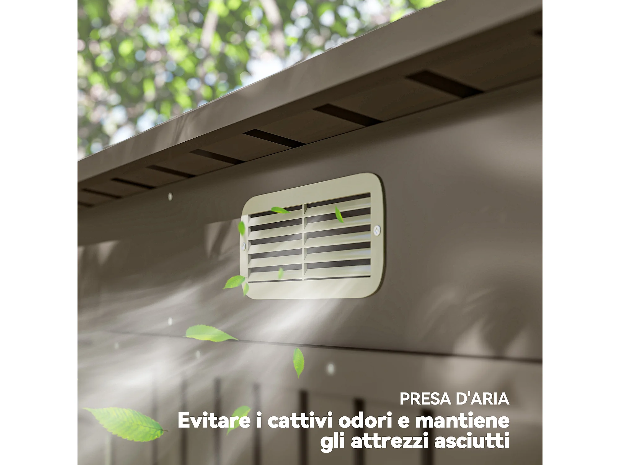 Capanno porta attrezzi con 2 prese d'aria e chiavistello grigio chiaro