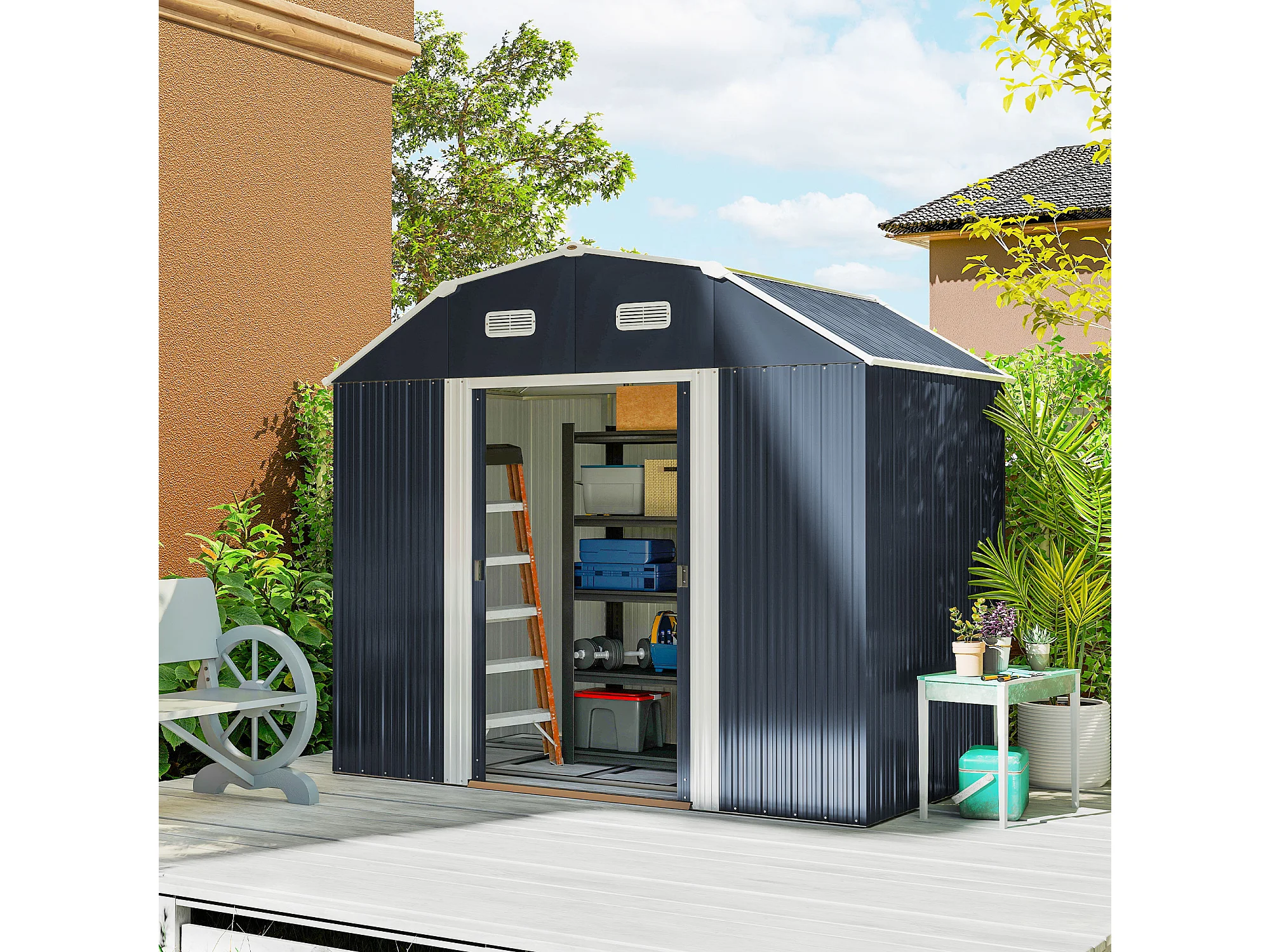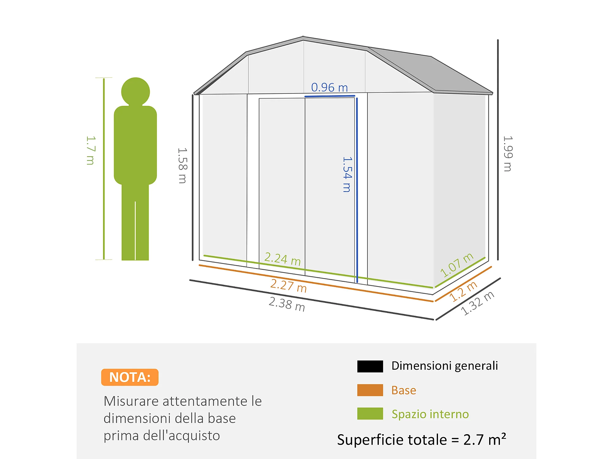 Capanno porta attrezzi con ripiani regolabili e 2 finestre grigio