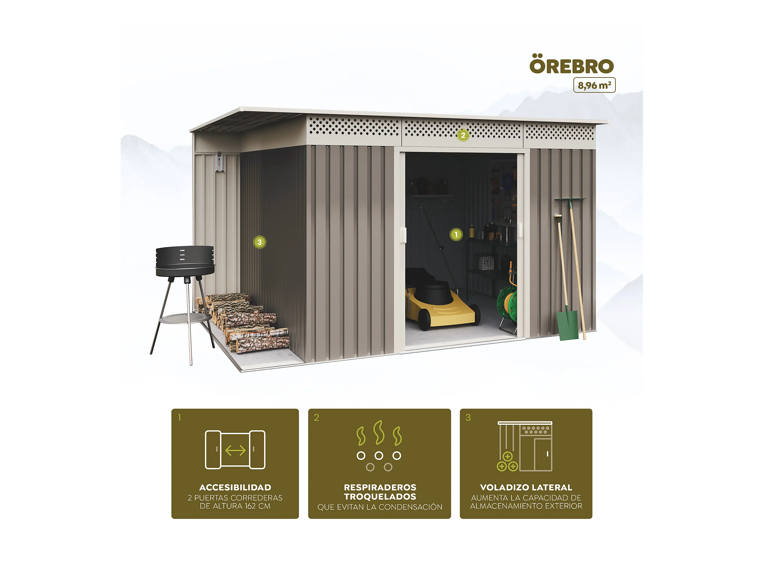 Capannone da giardino in metallo Orebro 8,96m2 - 10 anni di garanzia - 333x269x189cm. Capanno da giardino