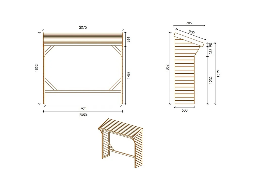 Capannone per legna 1.55 m3 - 2.00x0.50 m - H.1.85 m - Trattata - DREW2 - ALTANKA