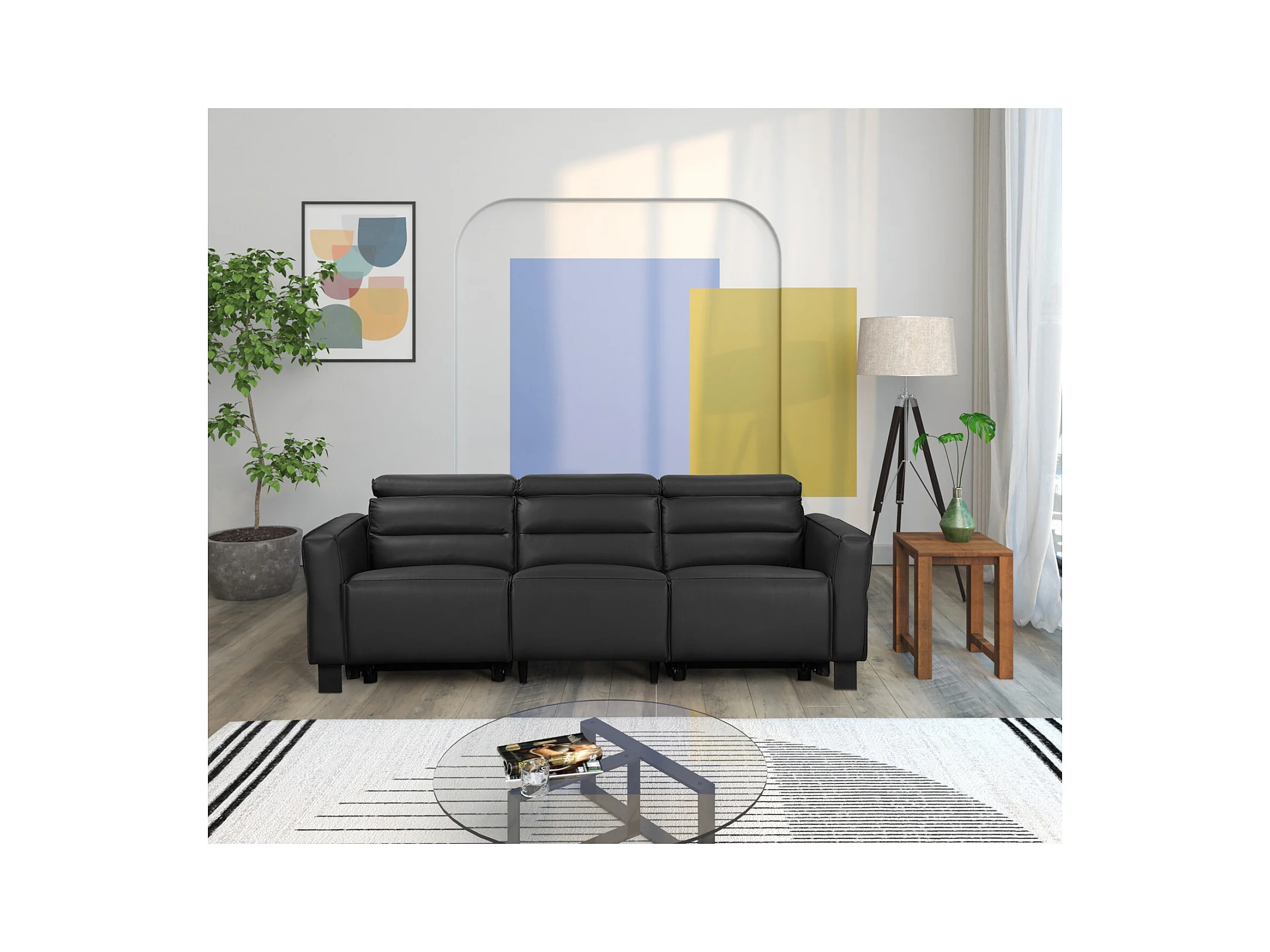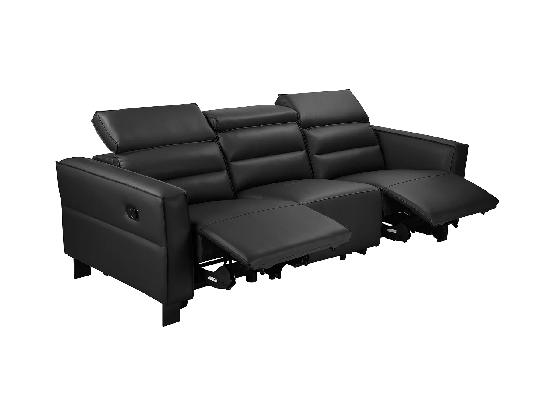 Carpari | Divano a 3 posti con 2 poltrone reclinabili manuali in similpelle nera