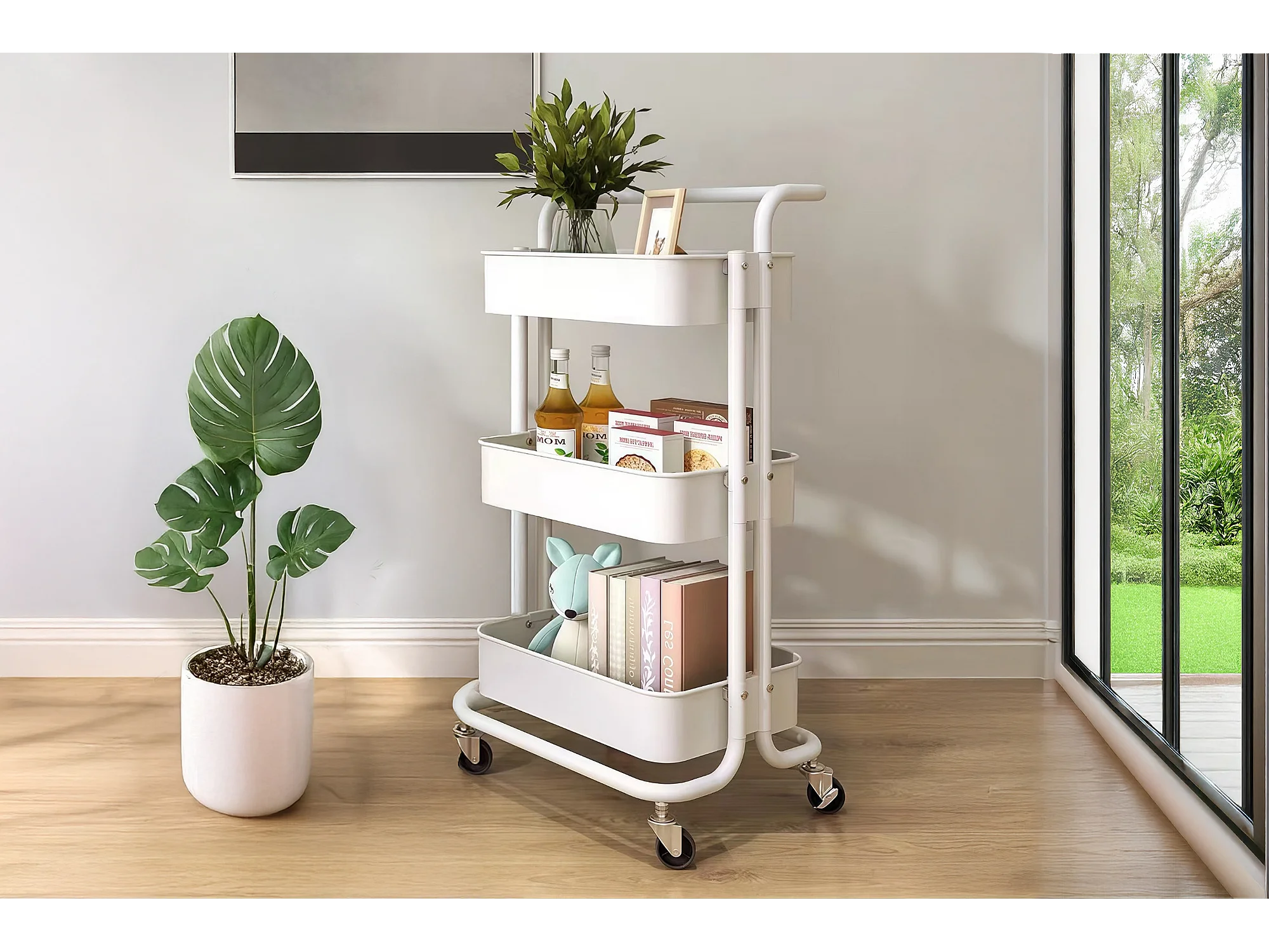 Carrello cucina a 3 livelli con ruote con freno e maniglie bianco